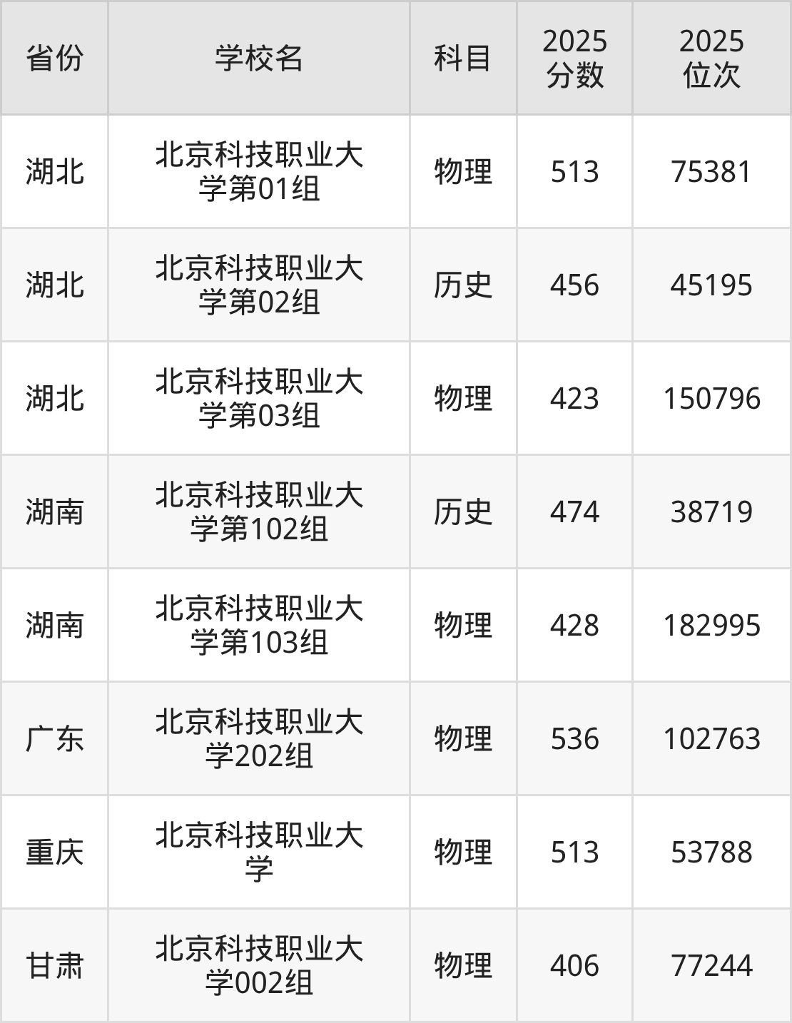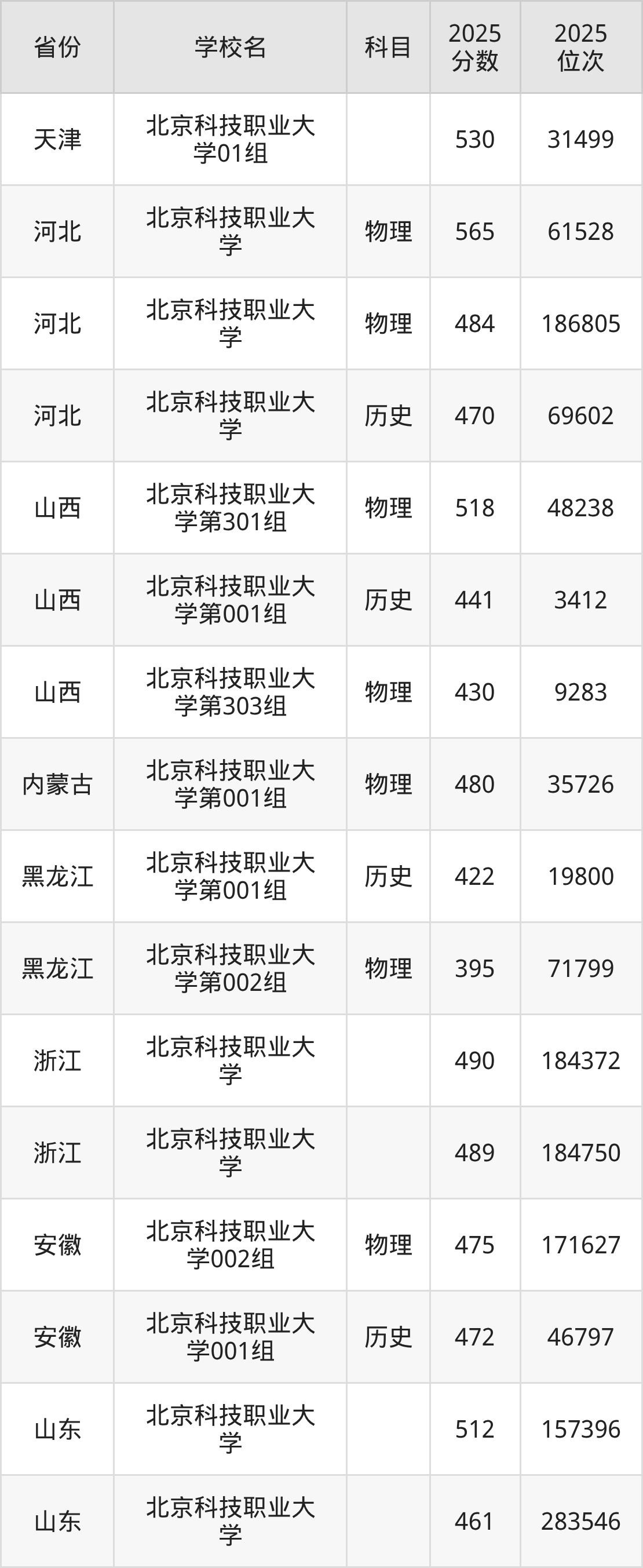 下面是北京科技职业大学2025年录取分数线各省汇总,一起来了解下吧。