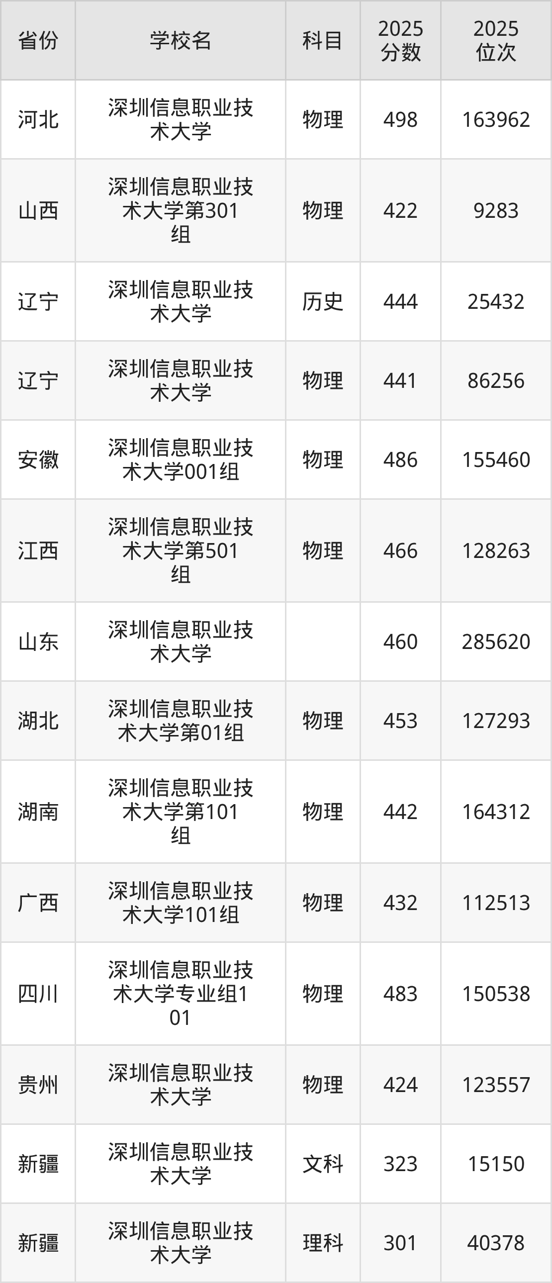 下面是深圳信息职业技术大学2025年录取分数线各省汇总,一起来了解下吧。