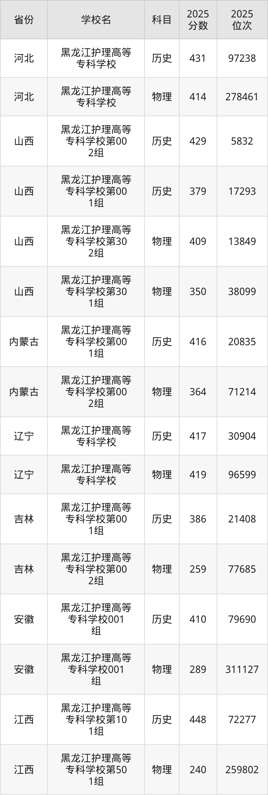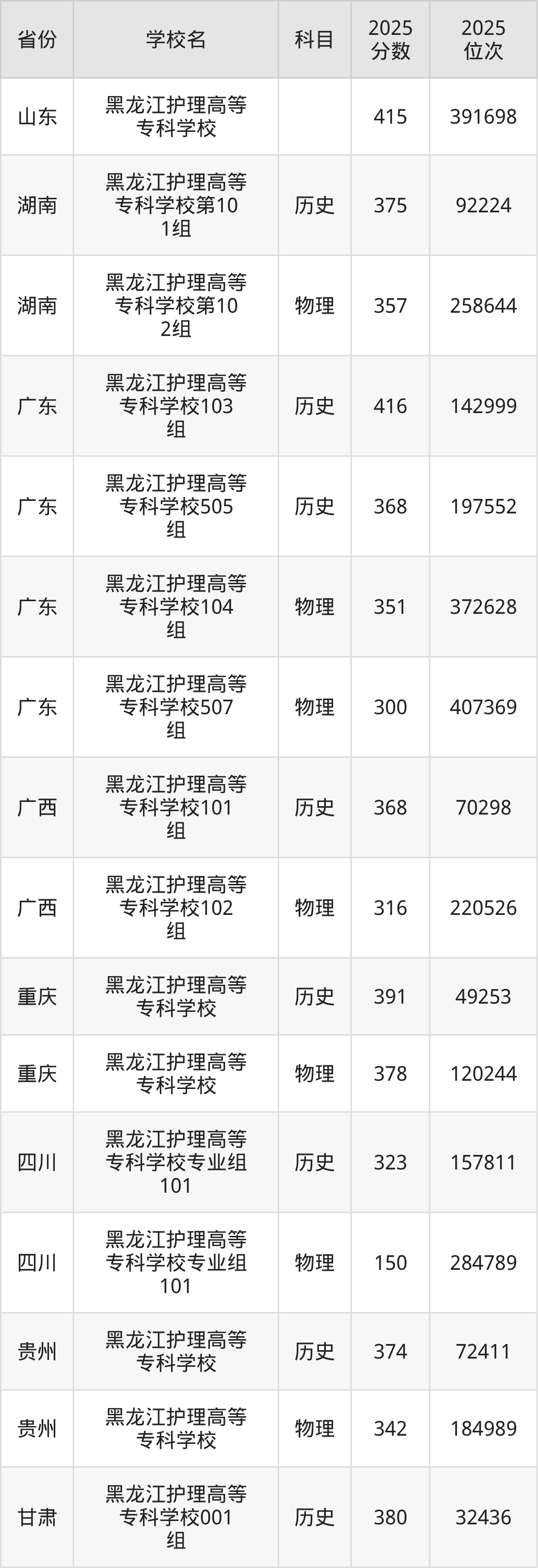 下面是黑龙江护理高等专科学校2025年录取分数线各省汇总,一起来了解下吧。