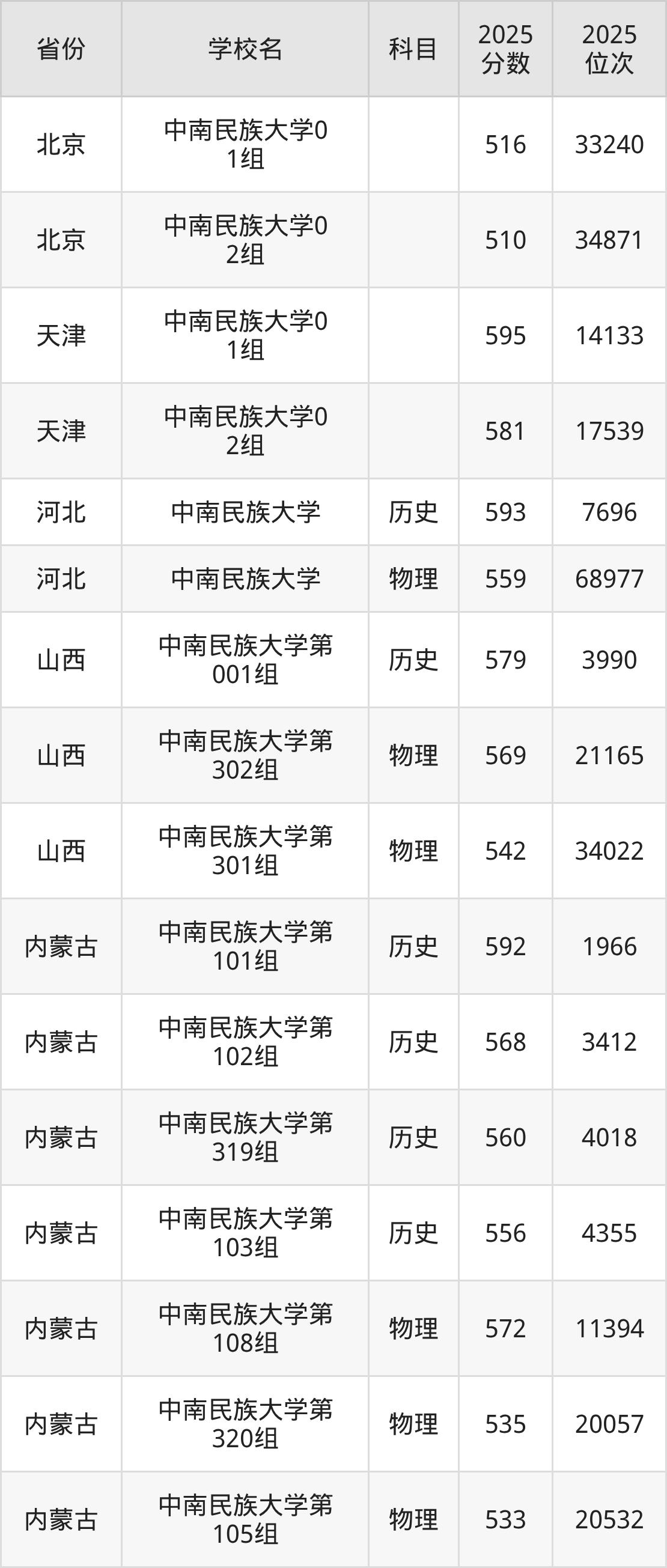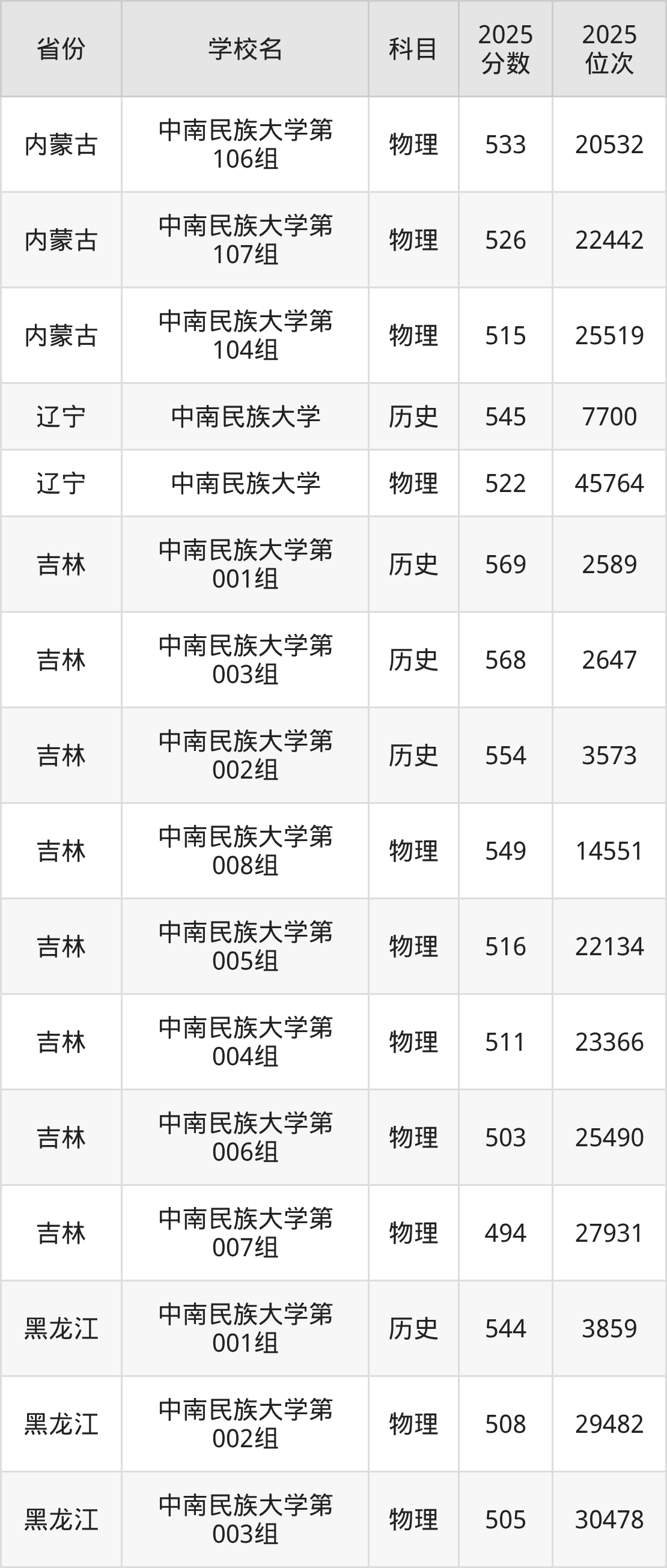 下面是中南民族大学2025年录取分数线各省汇总,一起来了解下吧。