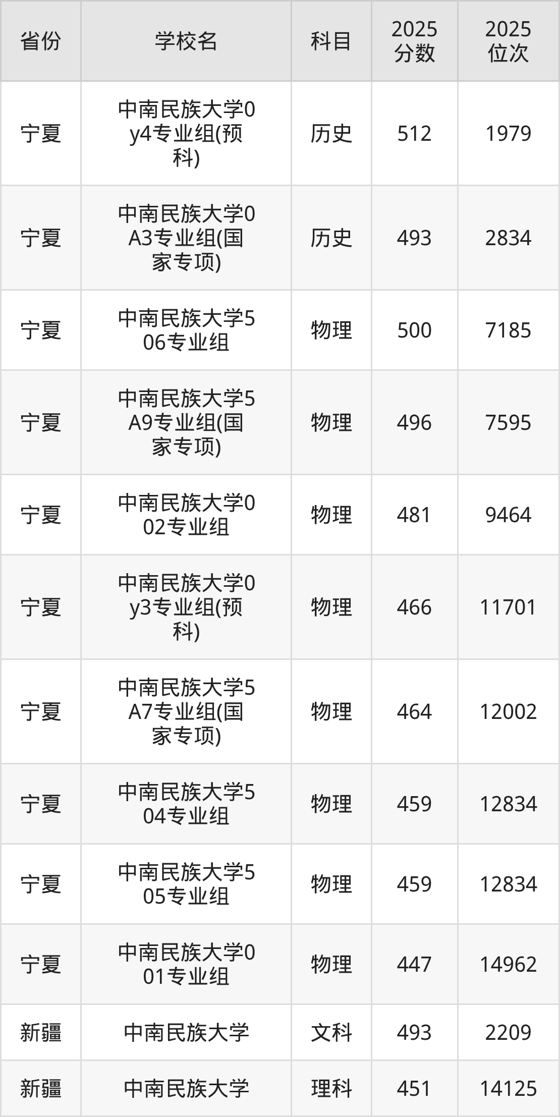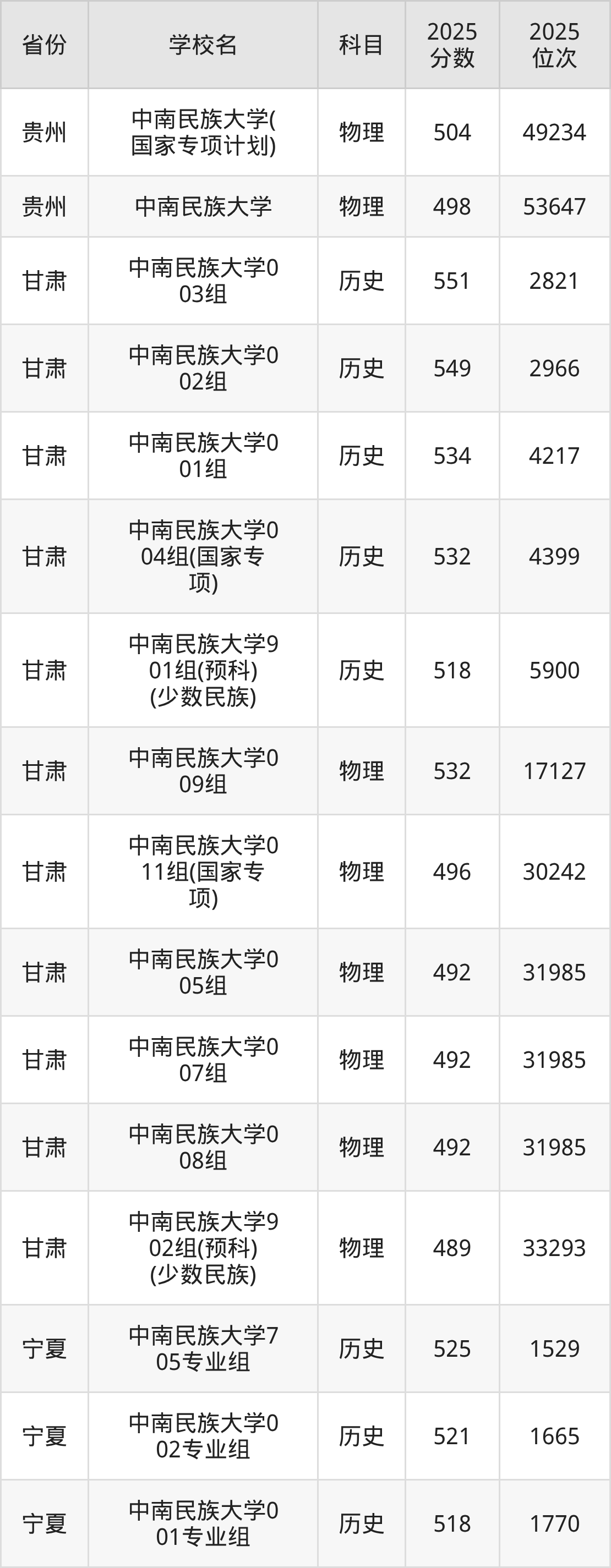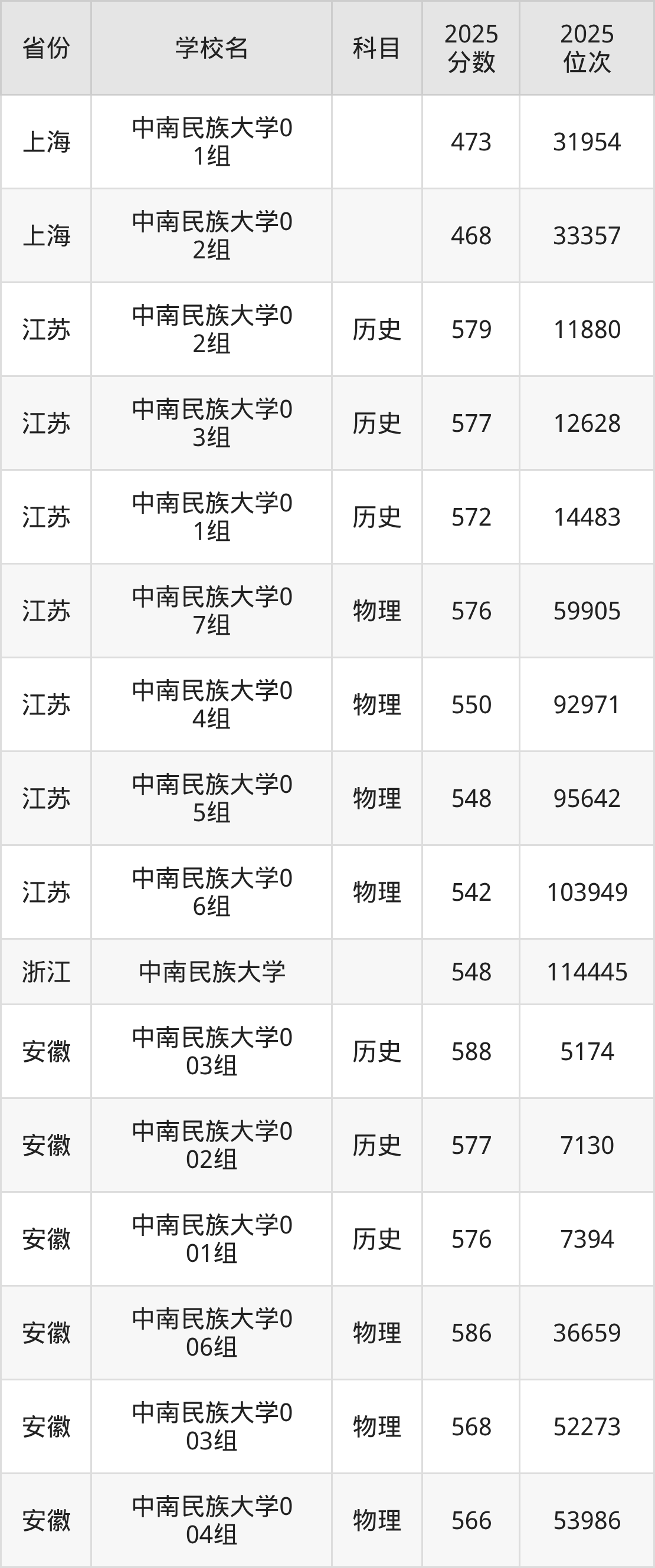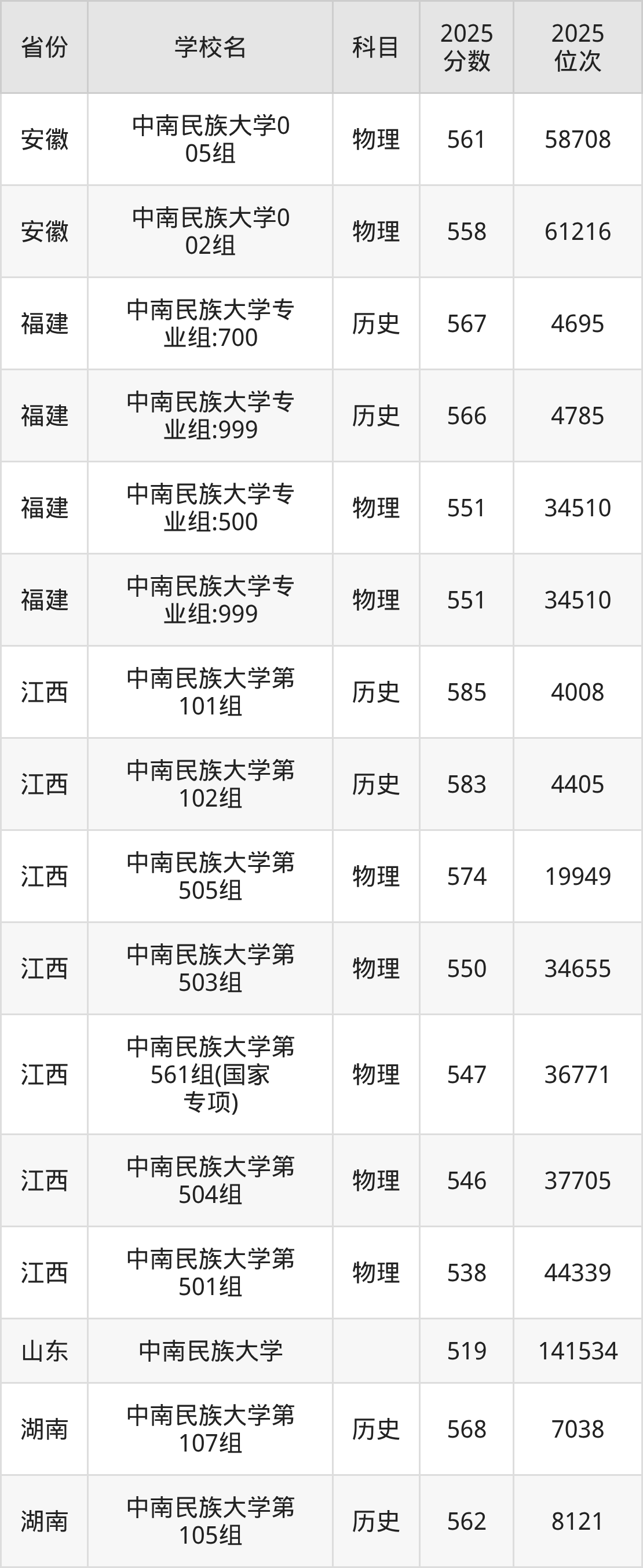 | 中南民族大学第 05组(国家专 项) | 历史 | 581 | 6337 |