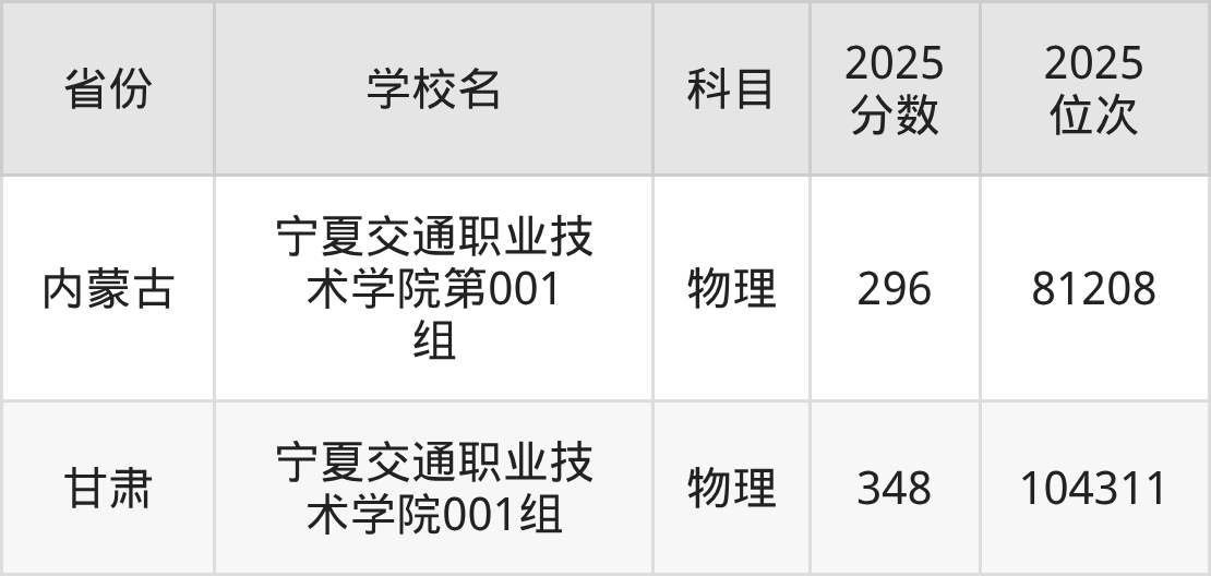 下面是宁夏交通职业技术学院2025年录取分数线各省汇总,一起来了解下吧。