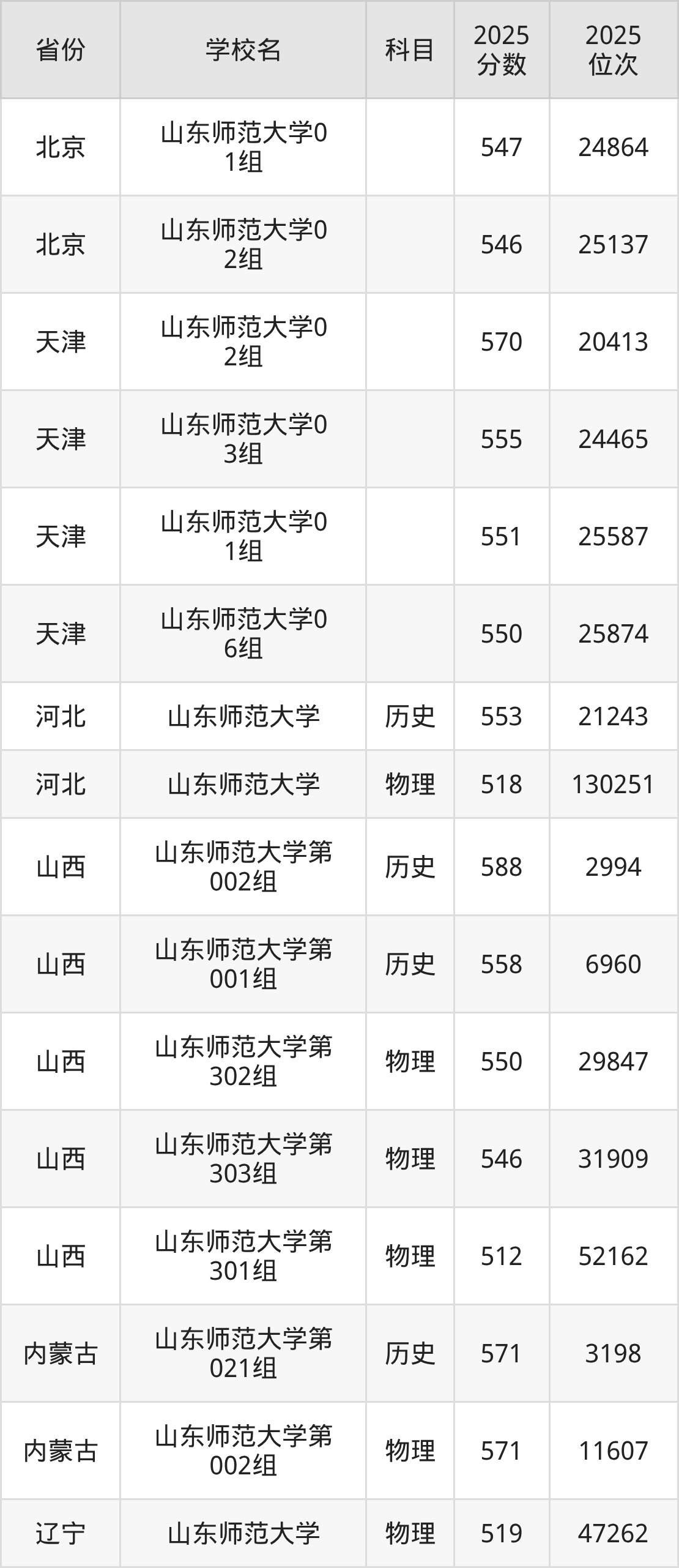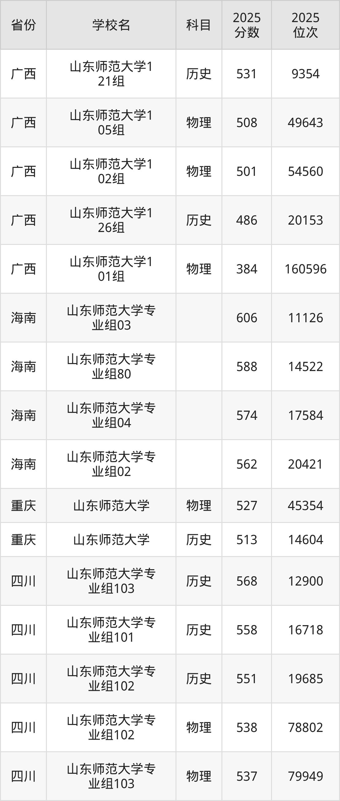 下面是山东师范大学2025年录取分数线各省汇总,一起来了解下吧。