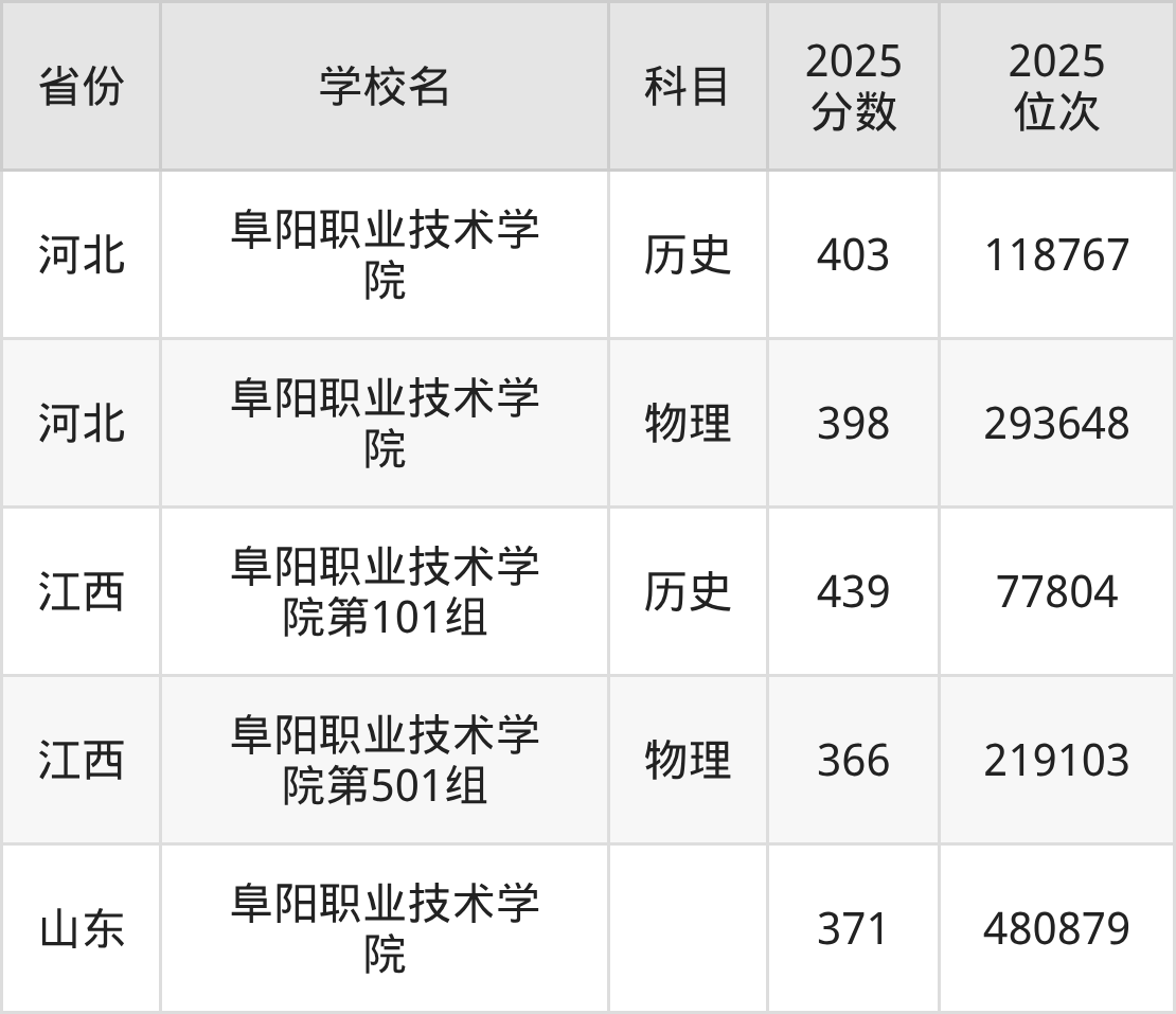 下面是阜阳职业技术学院2025年录取分数线各省汇总,一起来了解下吧。