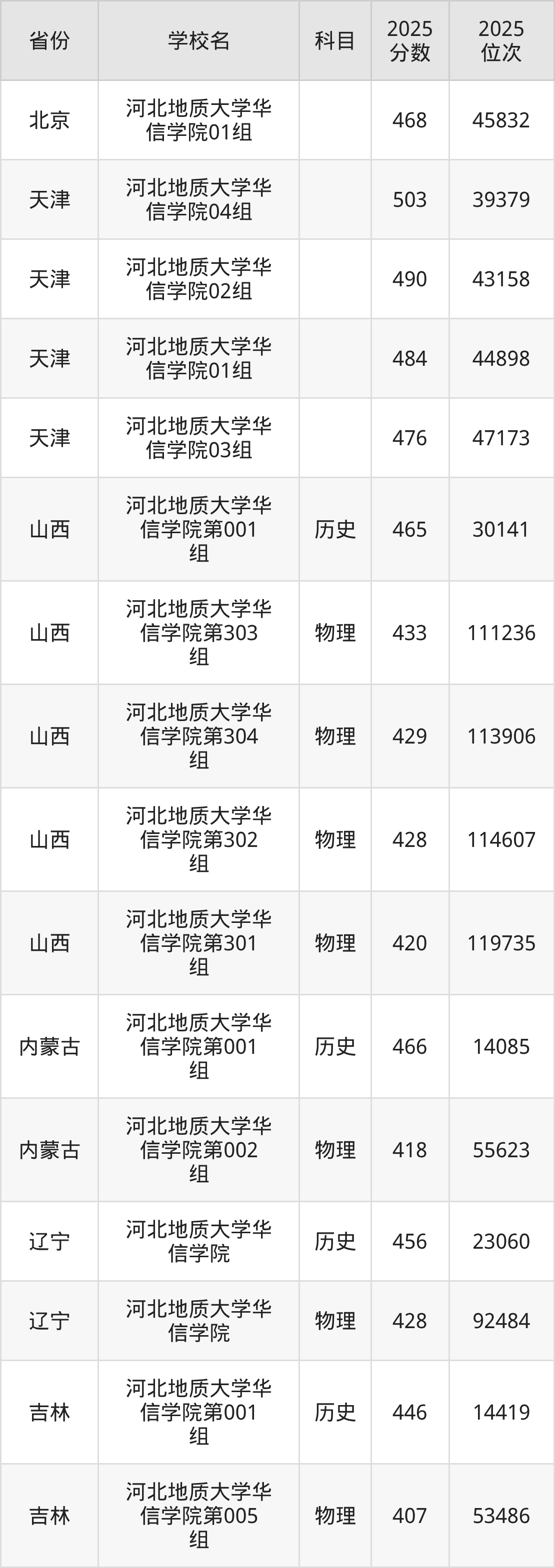 2025年河北地质大学华信学院在省内分历史物理科目类录取,其中历史类最低分是483分、对应位次是60848名;物理类最低分是466分,对应位次是214306名。