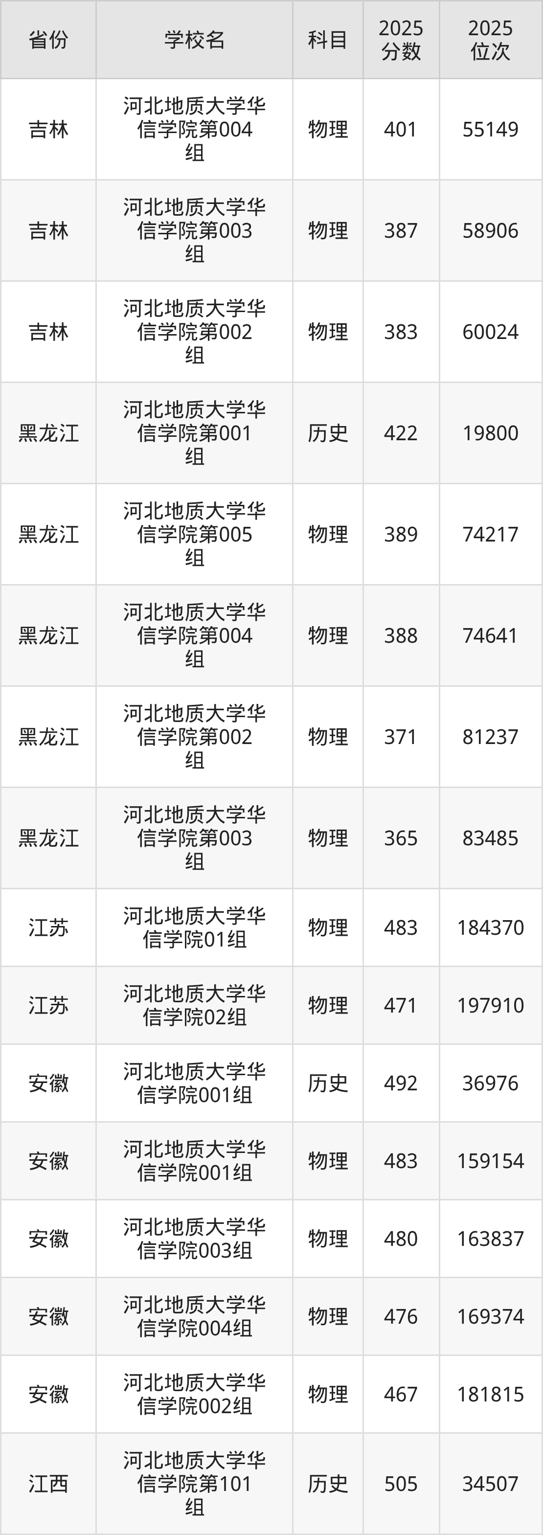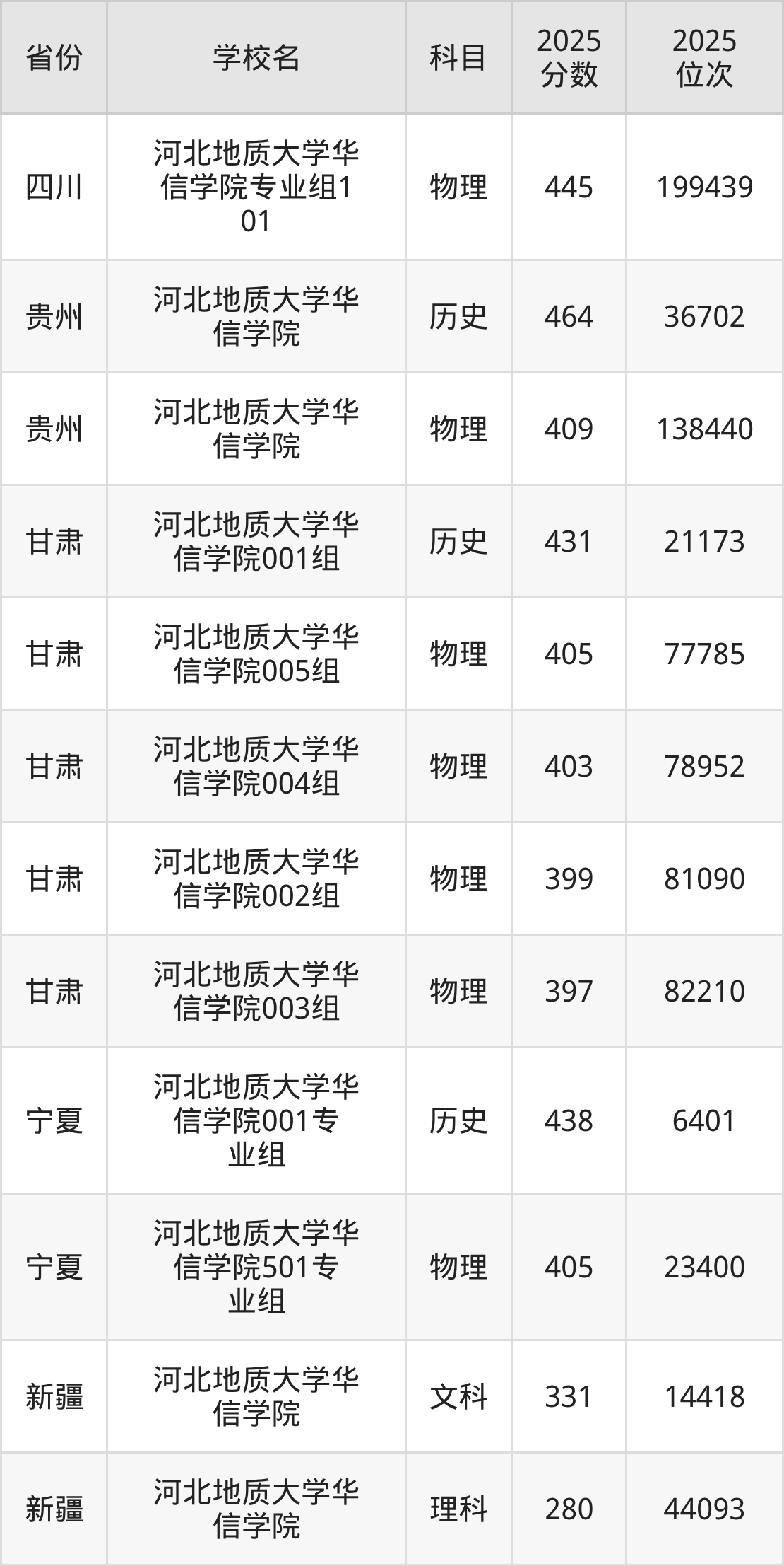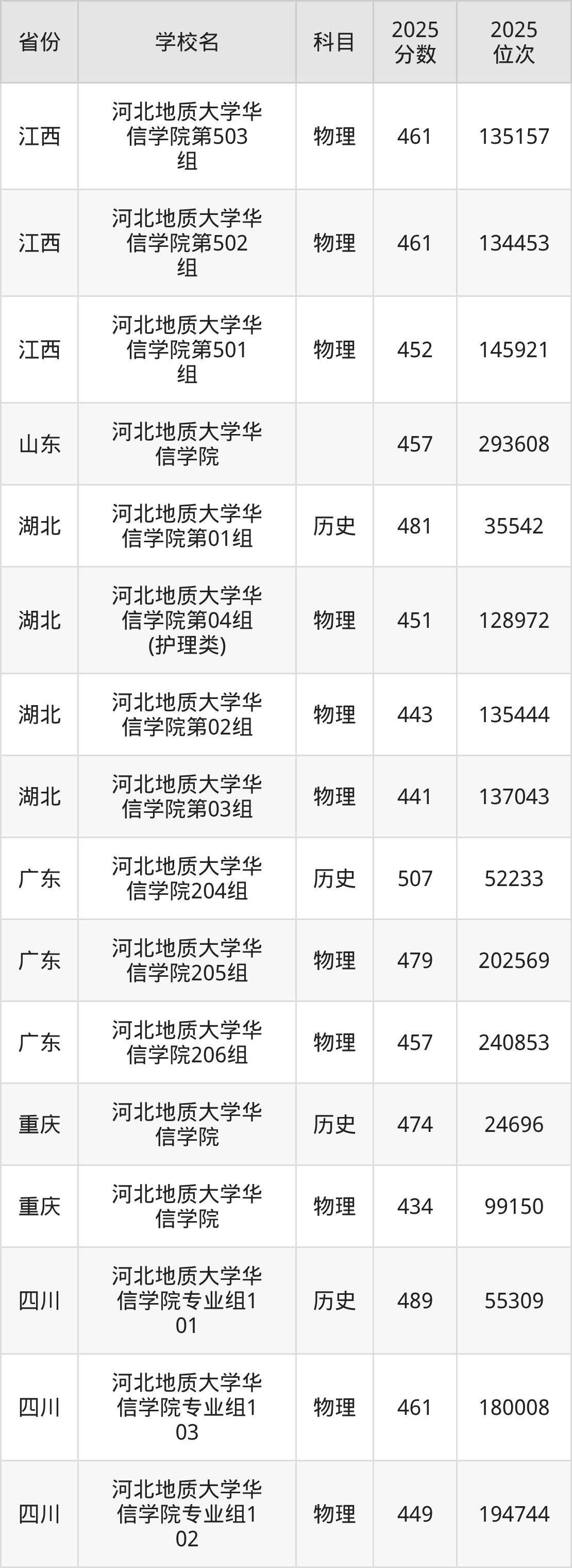 | 河北地质大学华 信学院 | 物理 | 466 | 214306 |