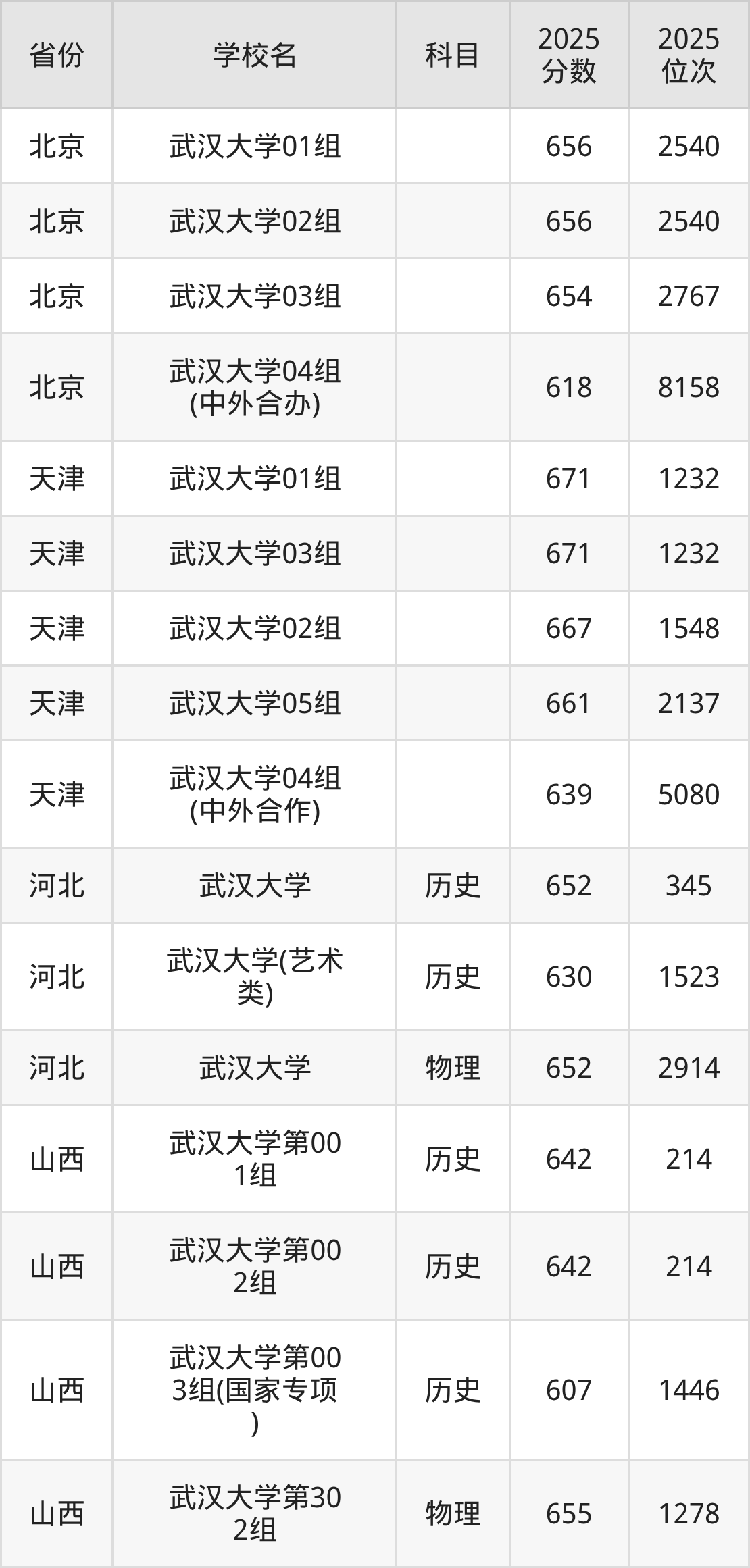 下面是武汉大学2025年录取分数线各省汇总,一起来了解下吧。