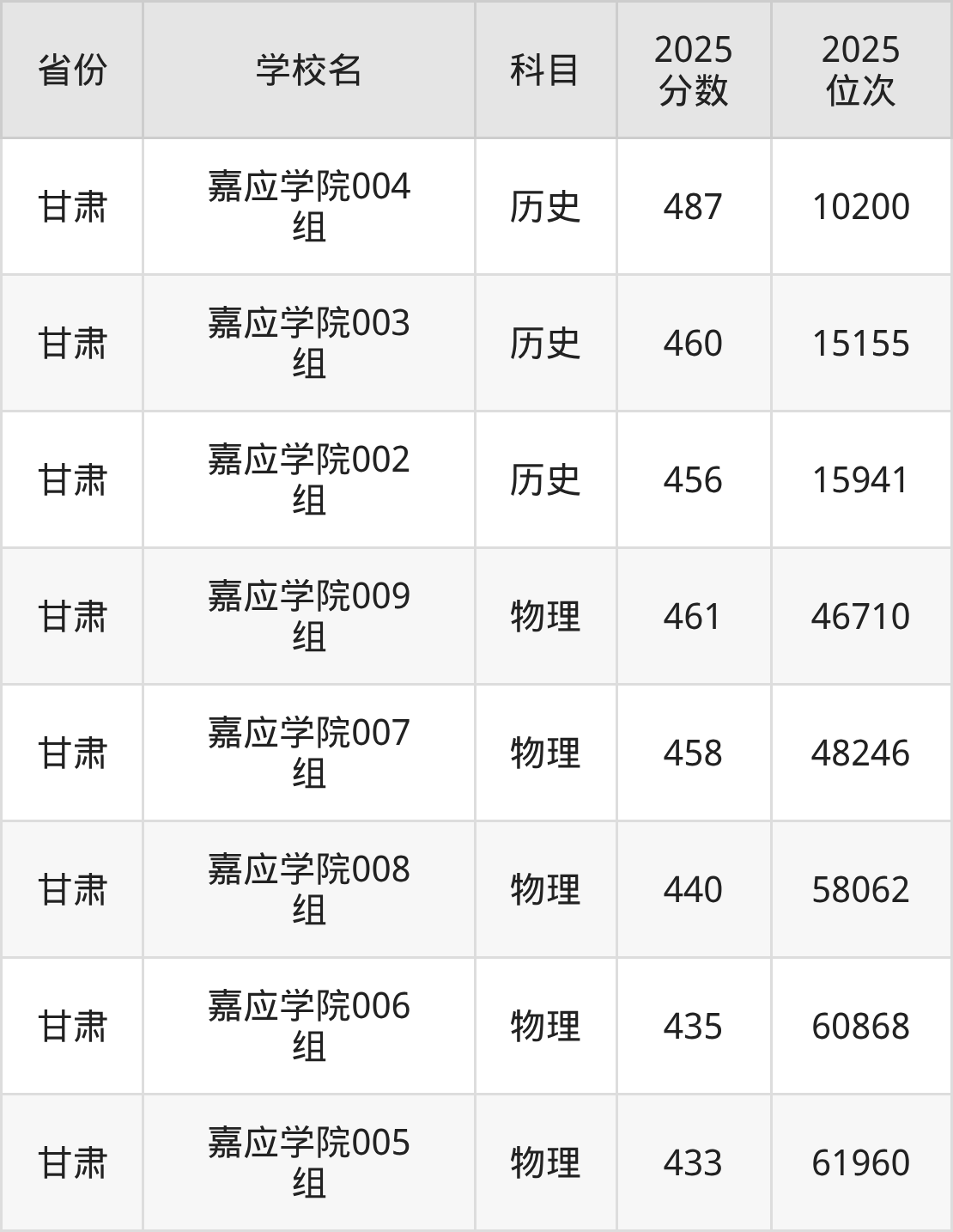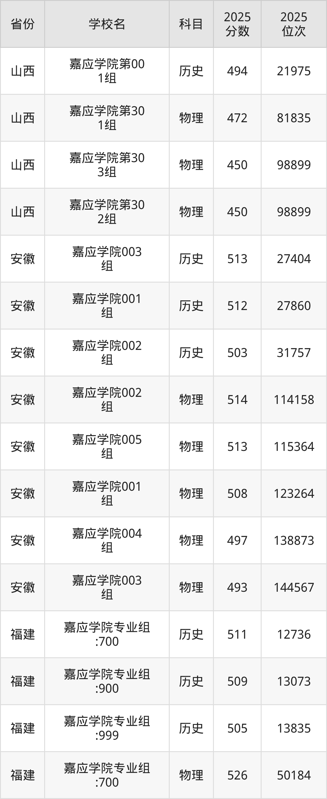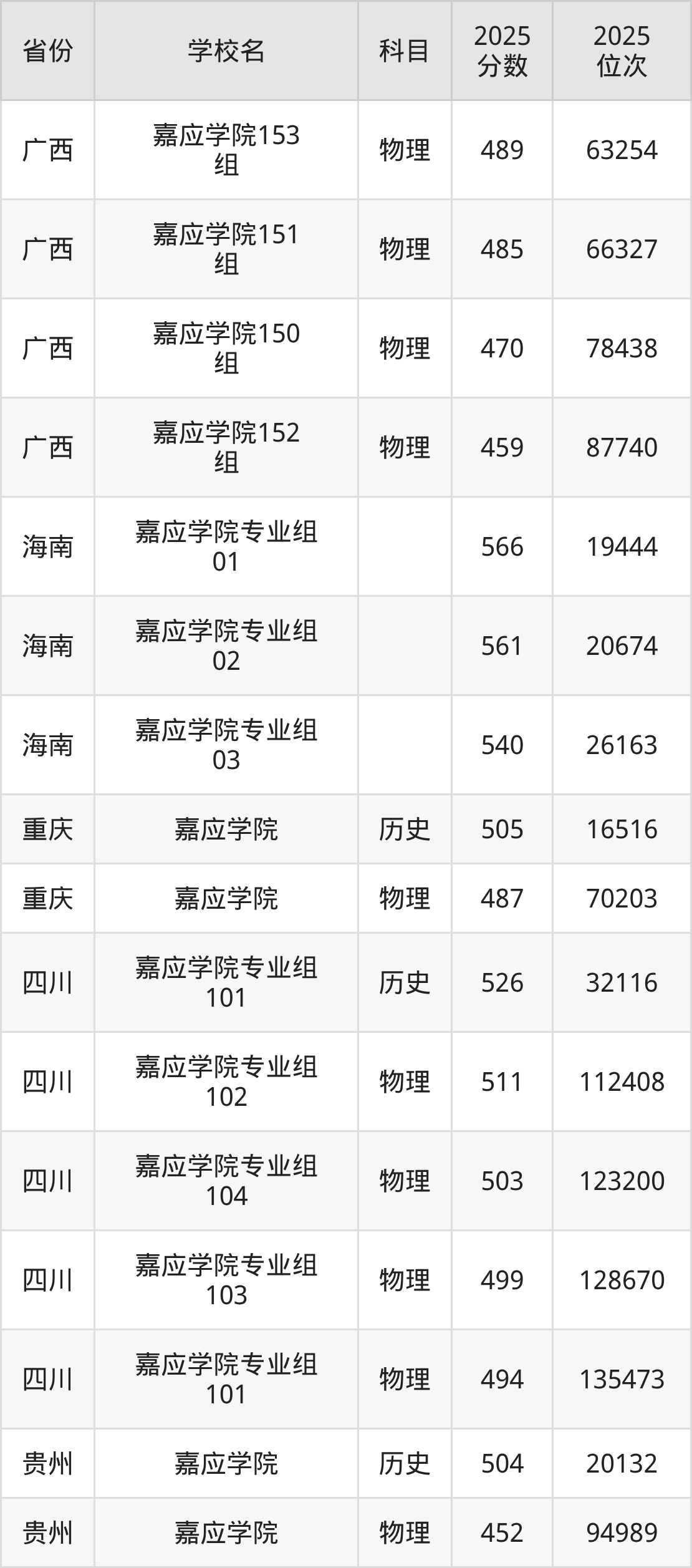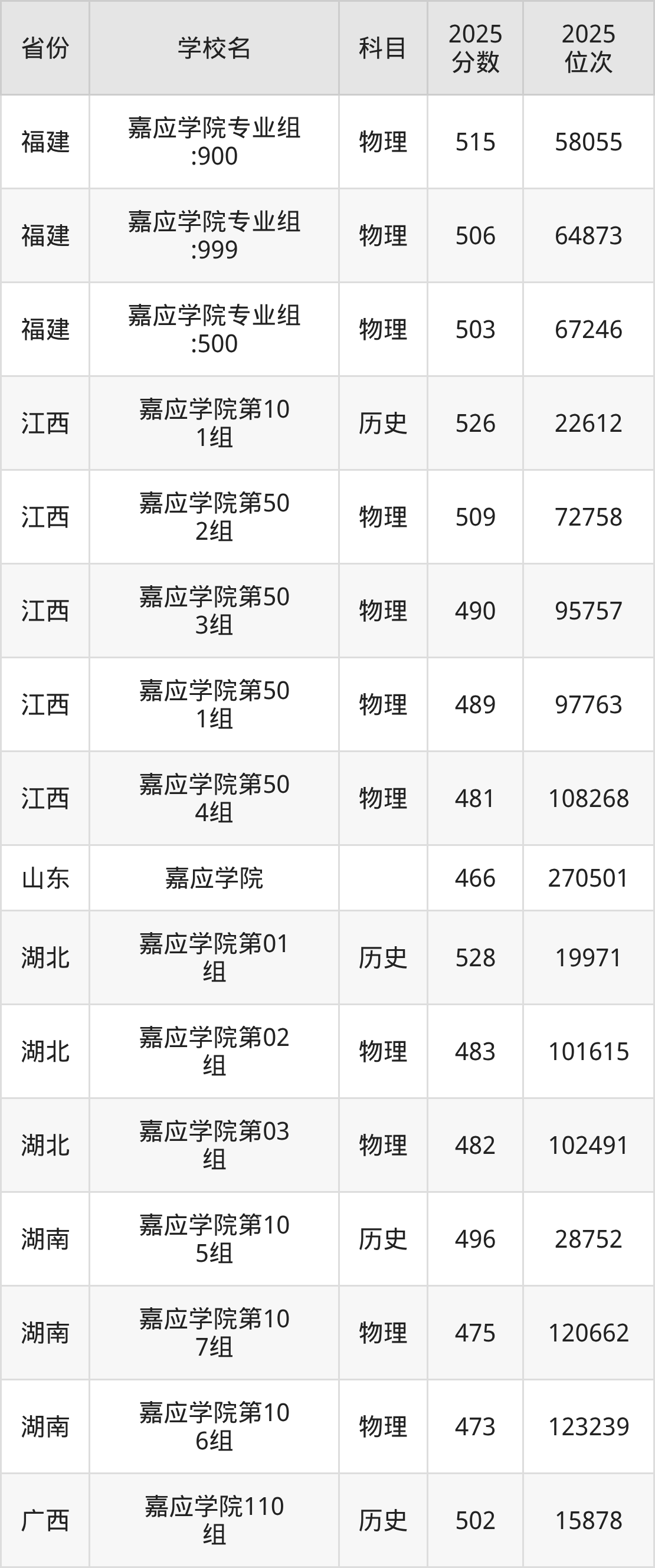 2025年嘉应学院历史类最低分512分(48345名)、物理类最低分491分(181086名)。