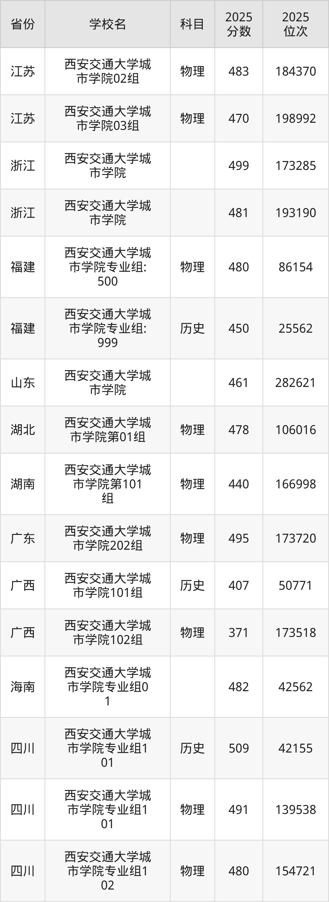 下面是西安交通大学城市学院2025年录取分数线各省汇总,一起来了解下吧。