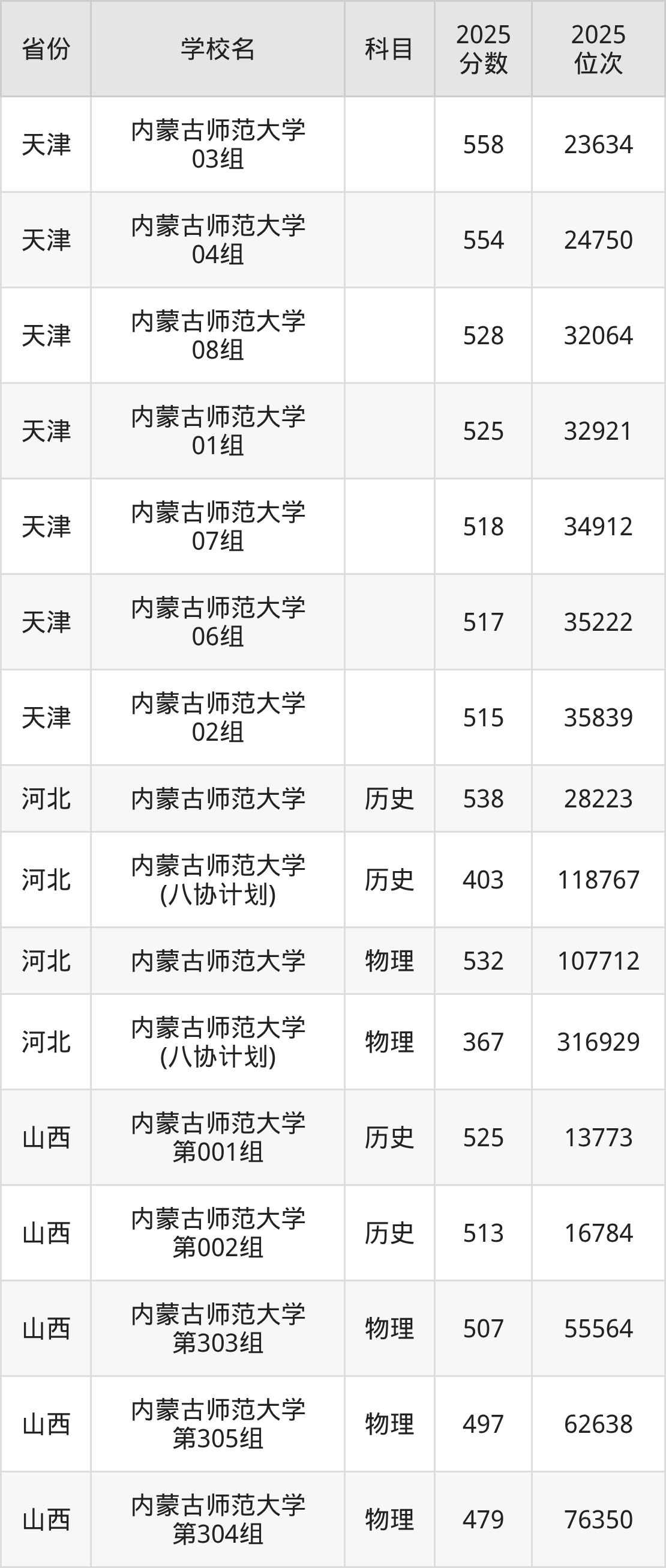 下面是内蒙古师范大学2025年录取分数线各省汇总,一起来了解下吧。