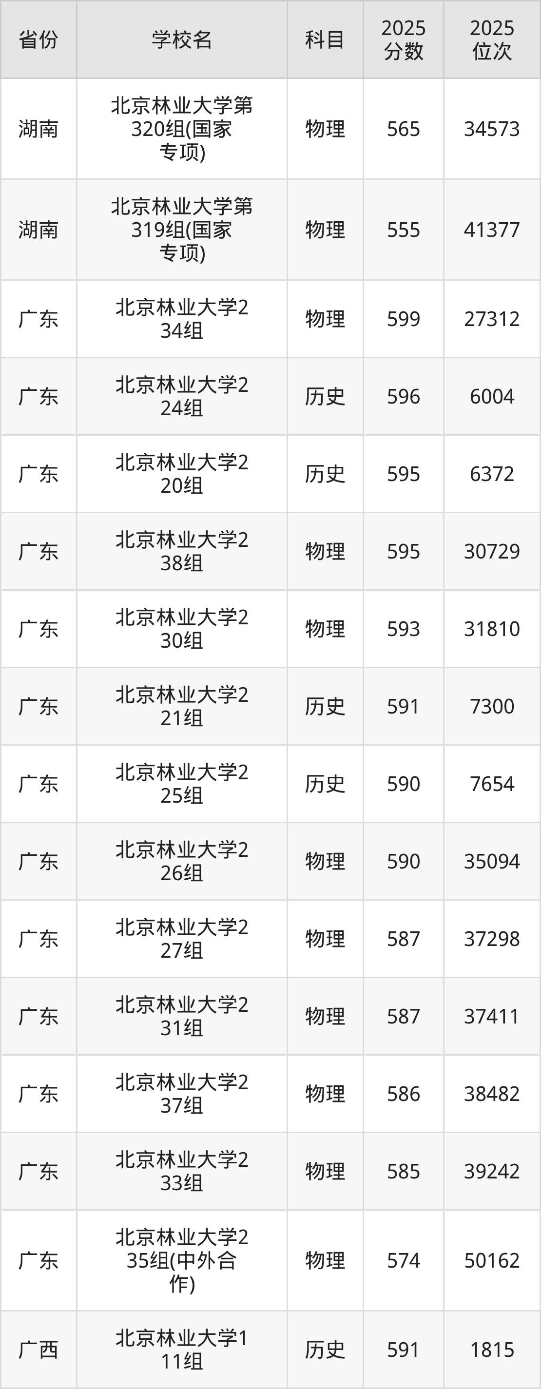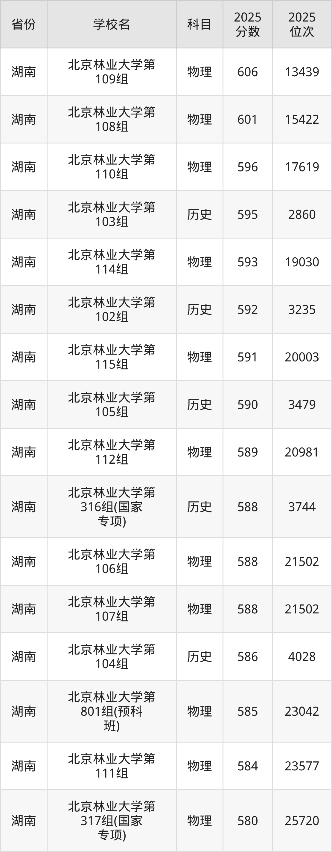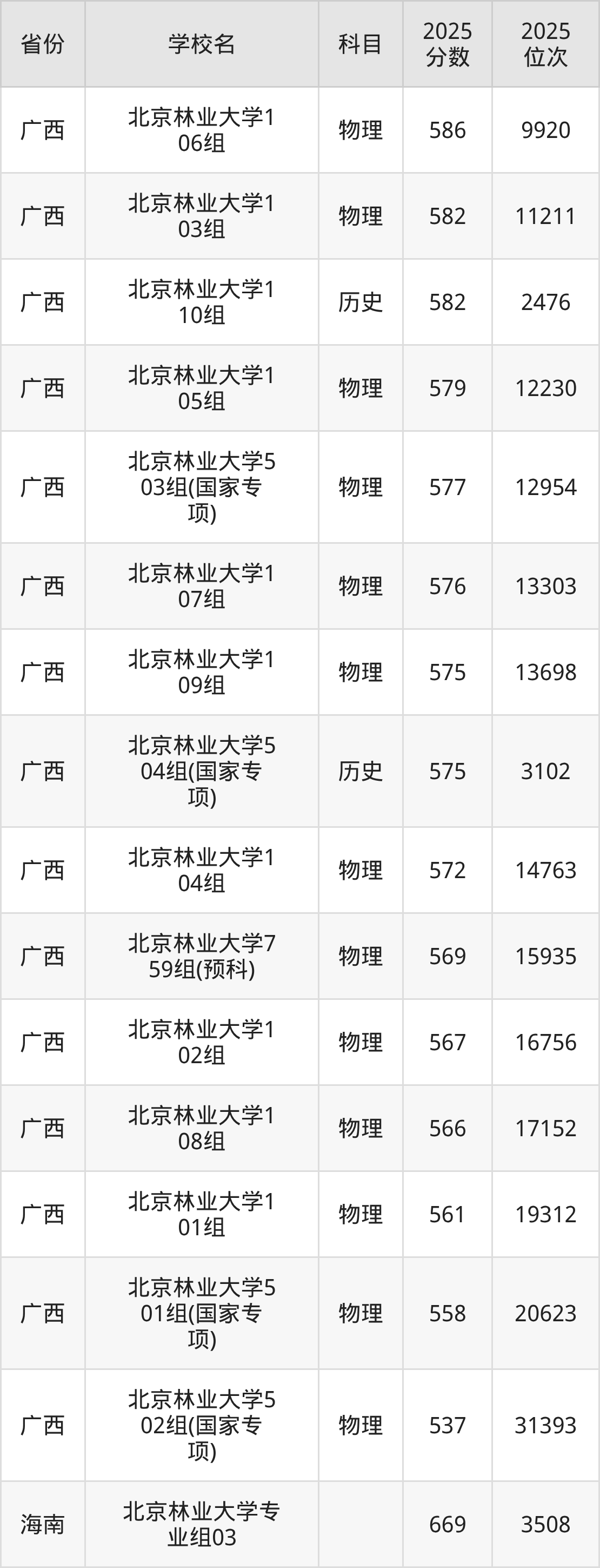 2025年北京林业大学最低分585分(15321名)。