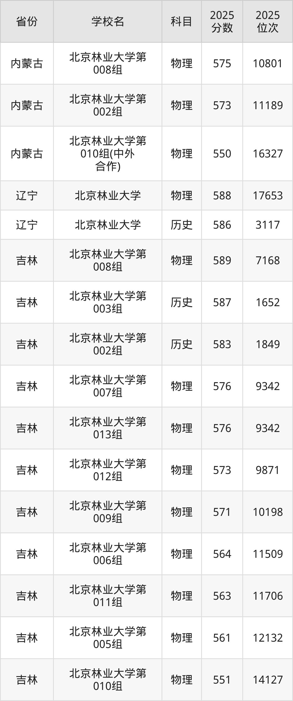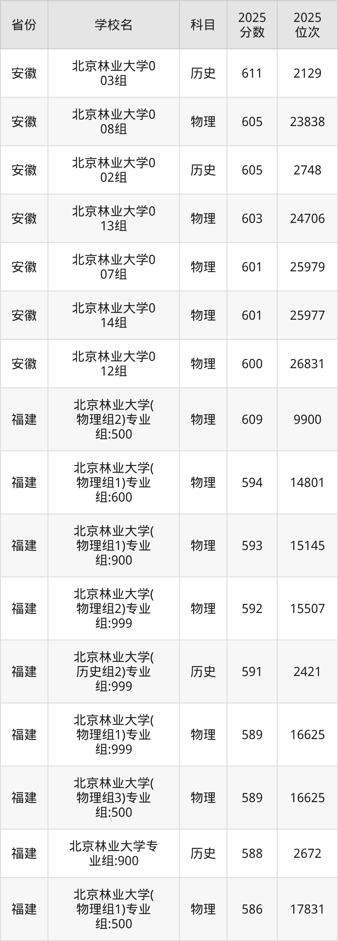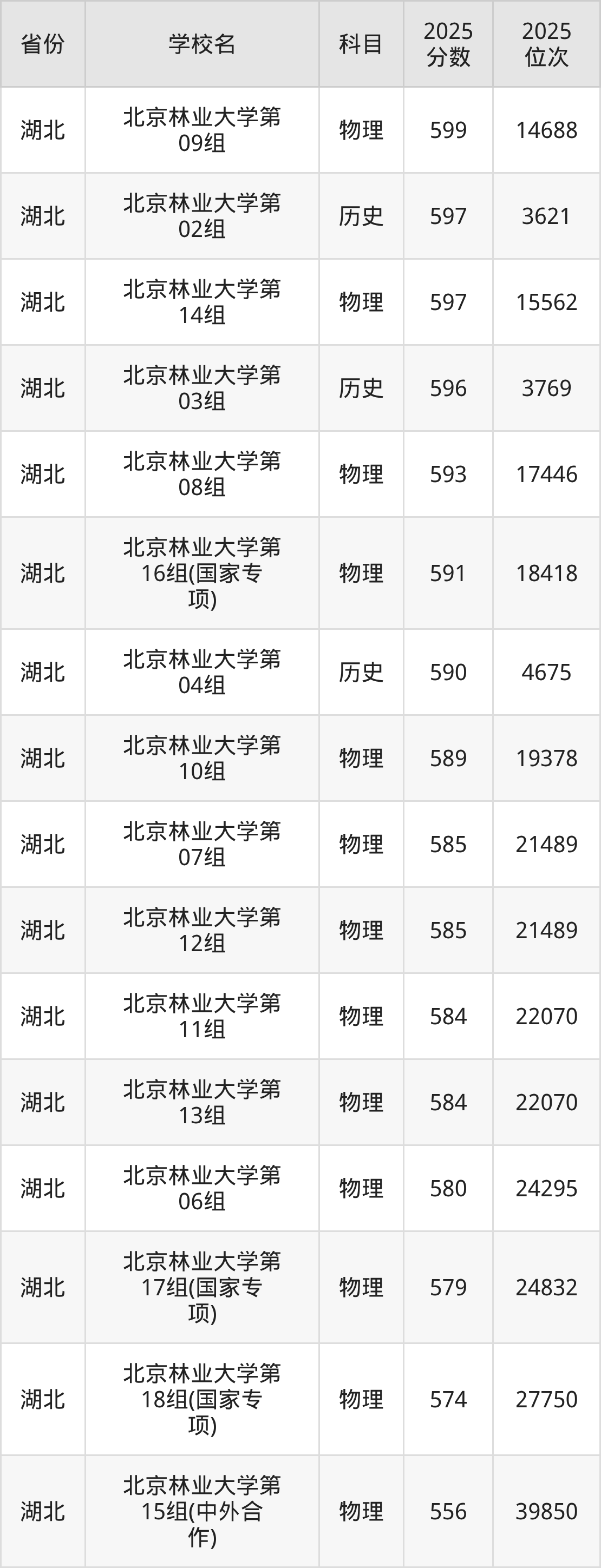 2025年北京林业大学最低分585分(15321名)。