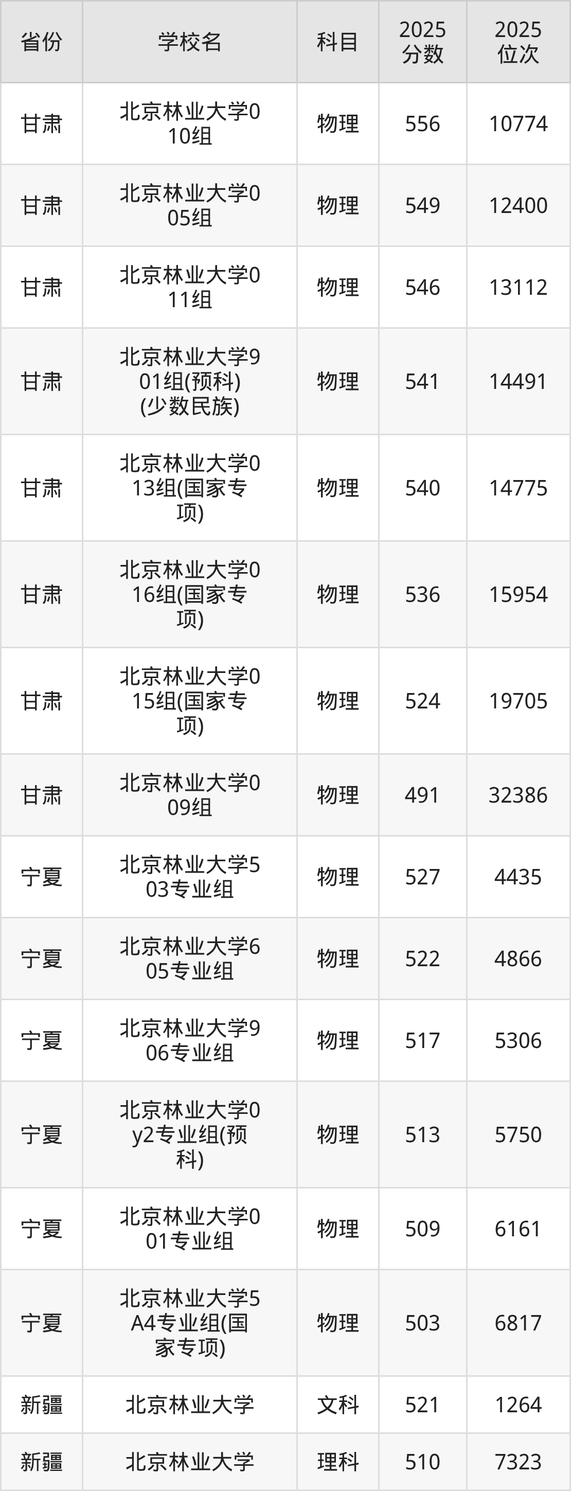 2025年北京林业大学在市外录取分数线范围整体位于491分到669分之间,录取分数线最低在甘肃物理(009组)、录取分数线最高在海南(专业组03)。
