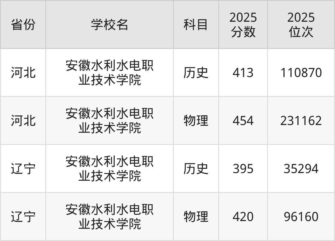下面是安徽水利水电职业技术学院2025年录取分数线各省汇总,一起来了解下吧。