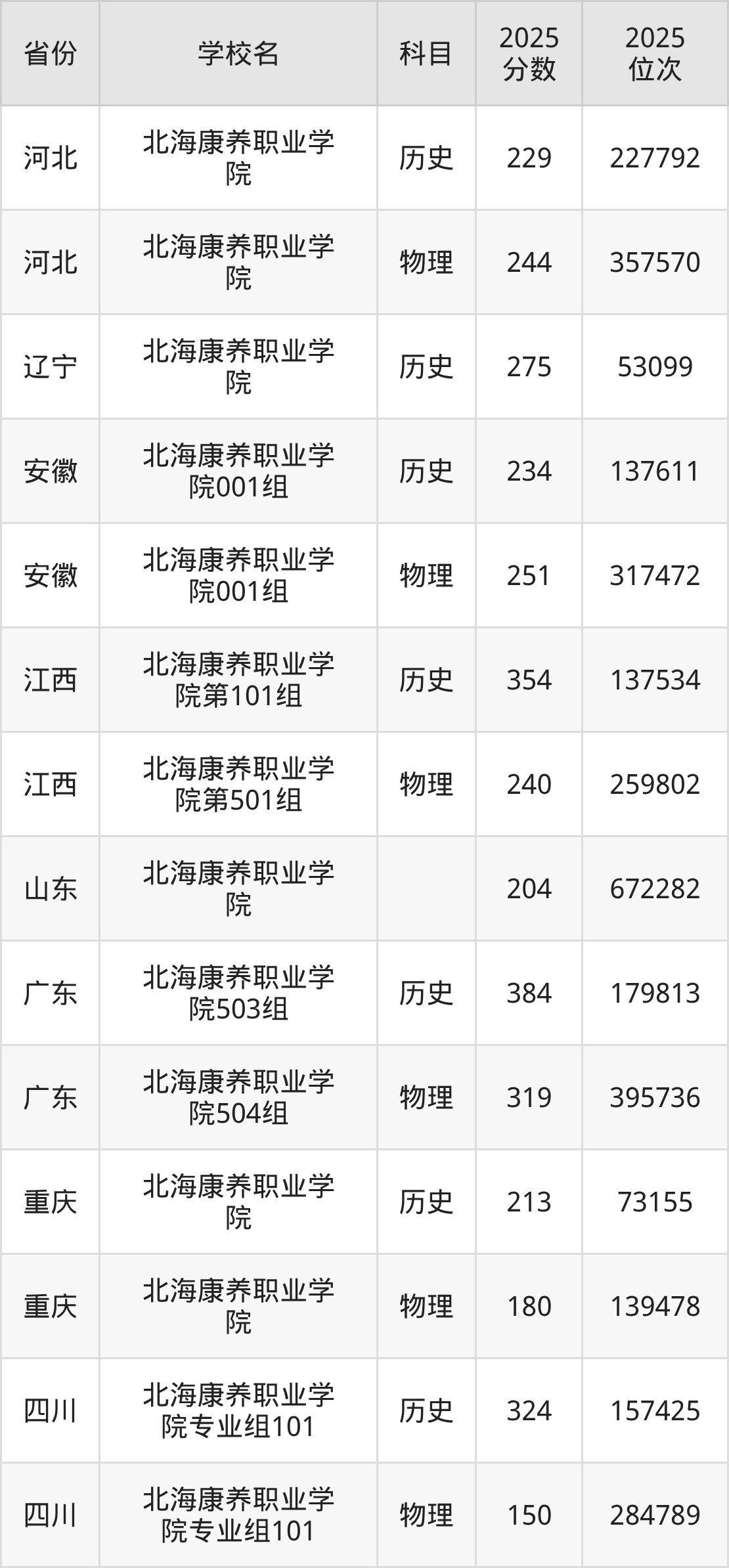 下面是北海康养职业学院2025年录取分数线各省汇总,一起来了解下吧。