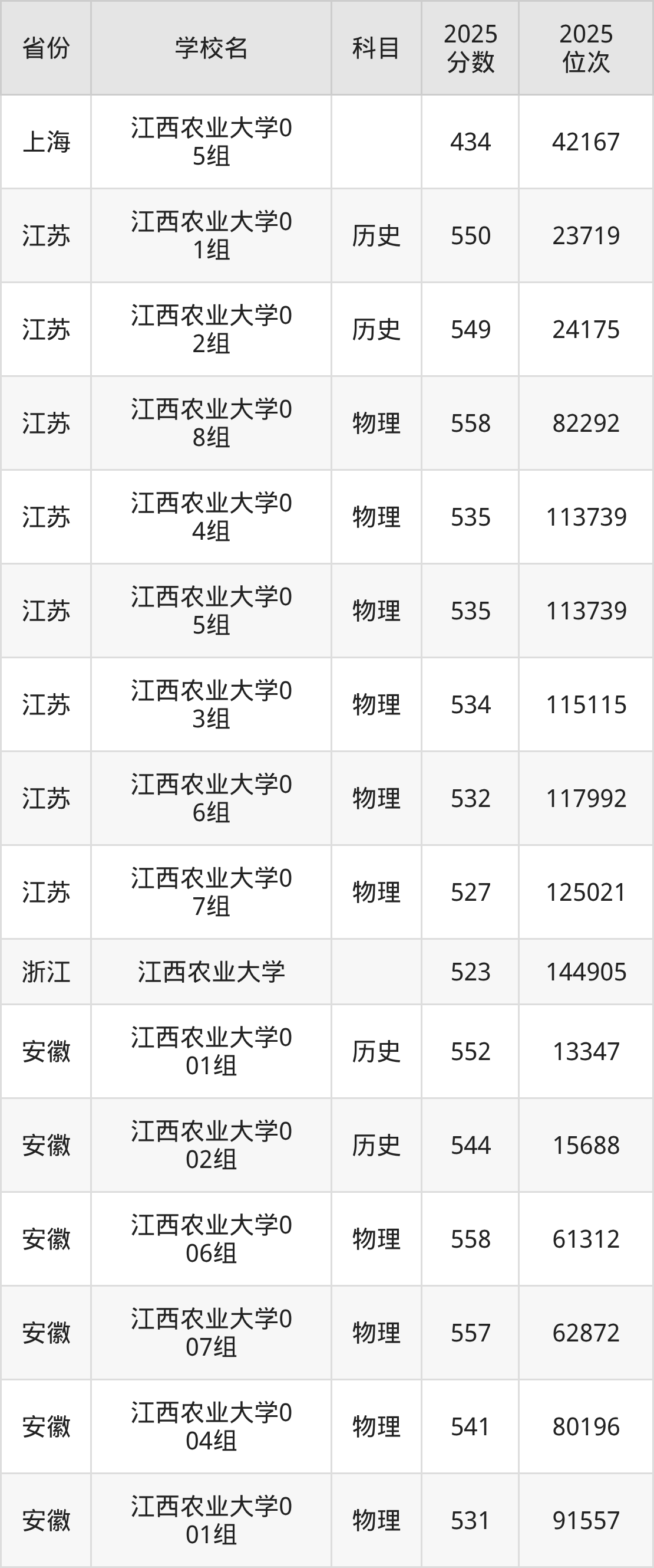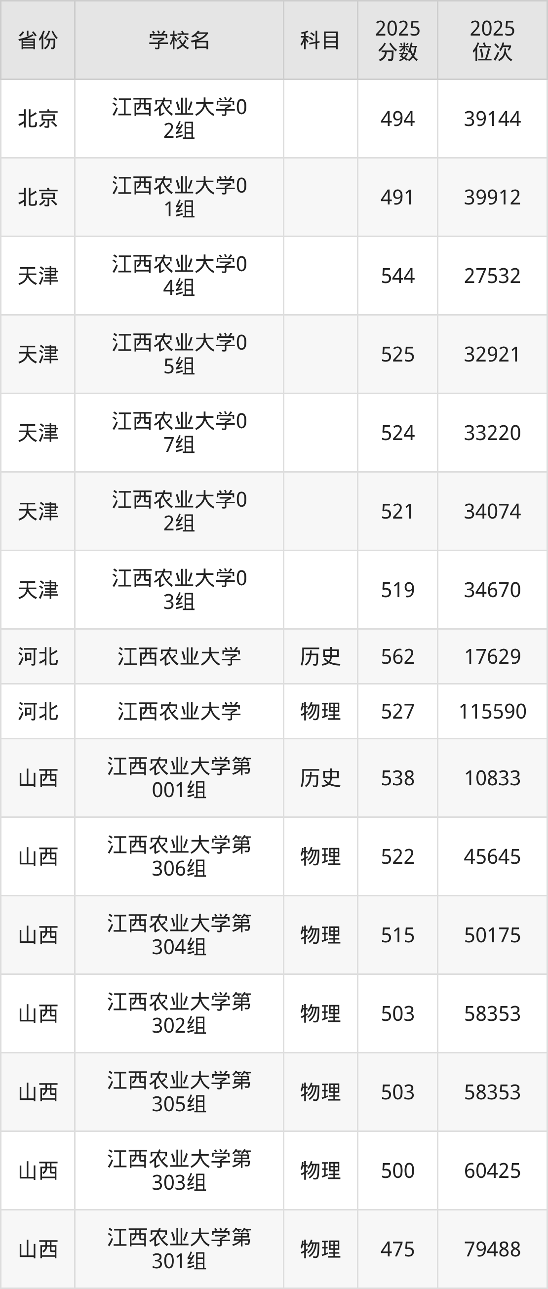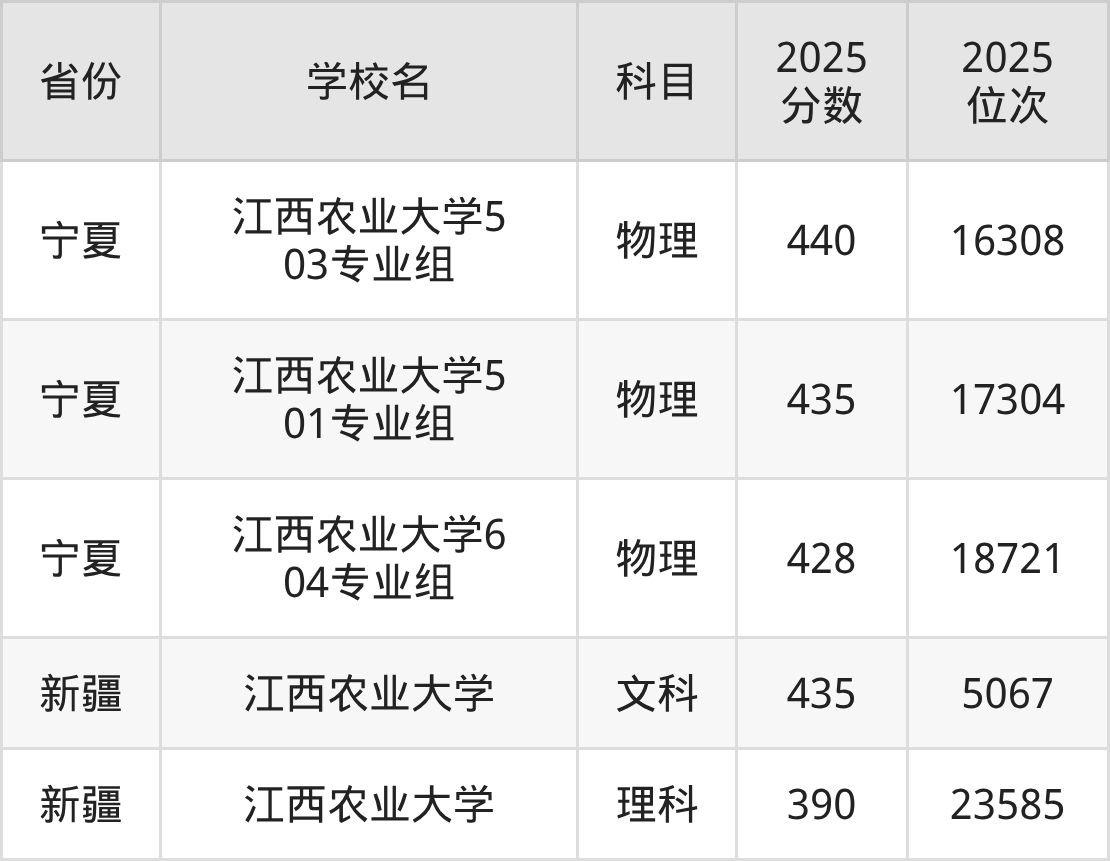 2025年江西农业大学历史类最低分525分(23389名)、物理类最低分496分(89190名)。