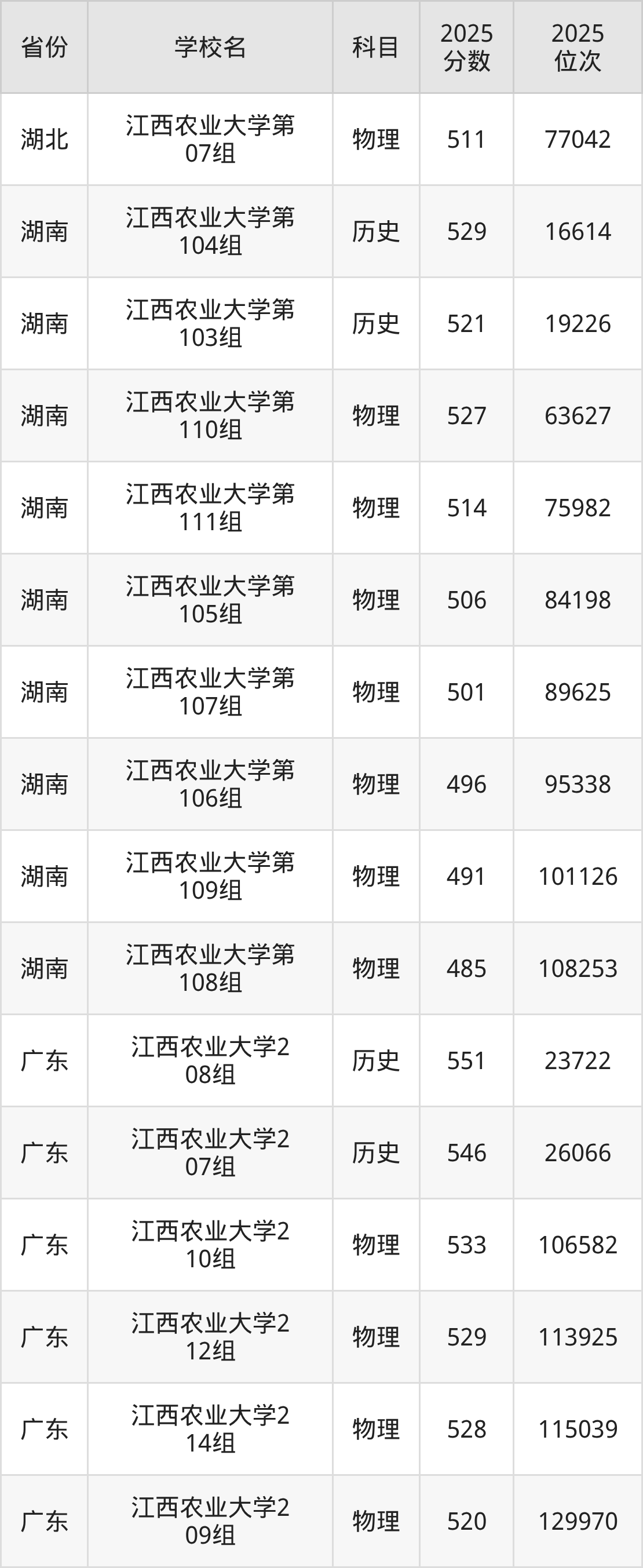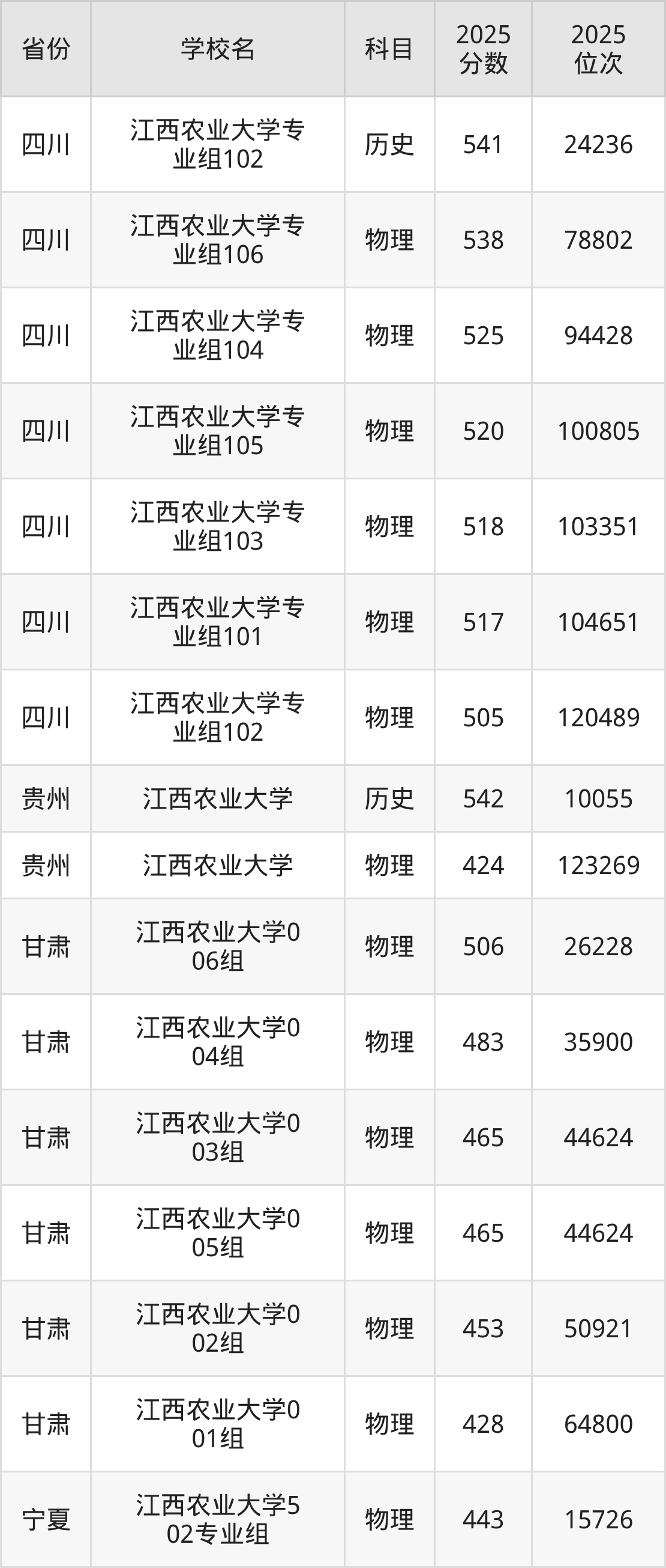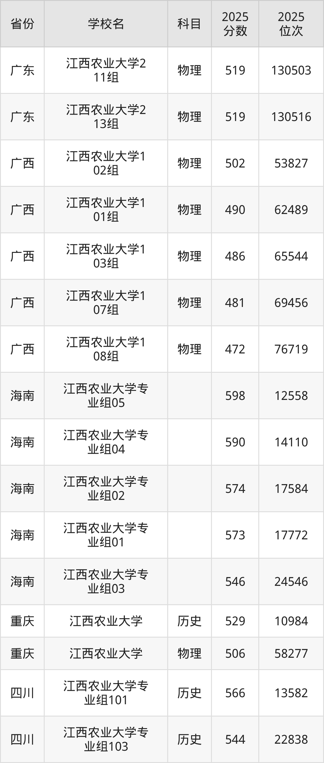 | 江西农业大学第 562组(国家 专项) | 物理 | 508 | 73706 |