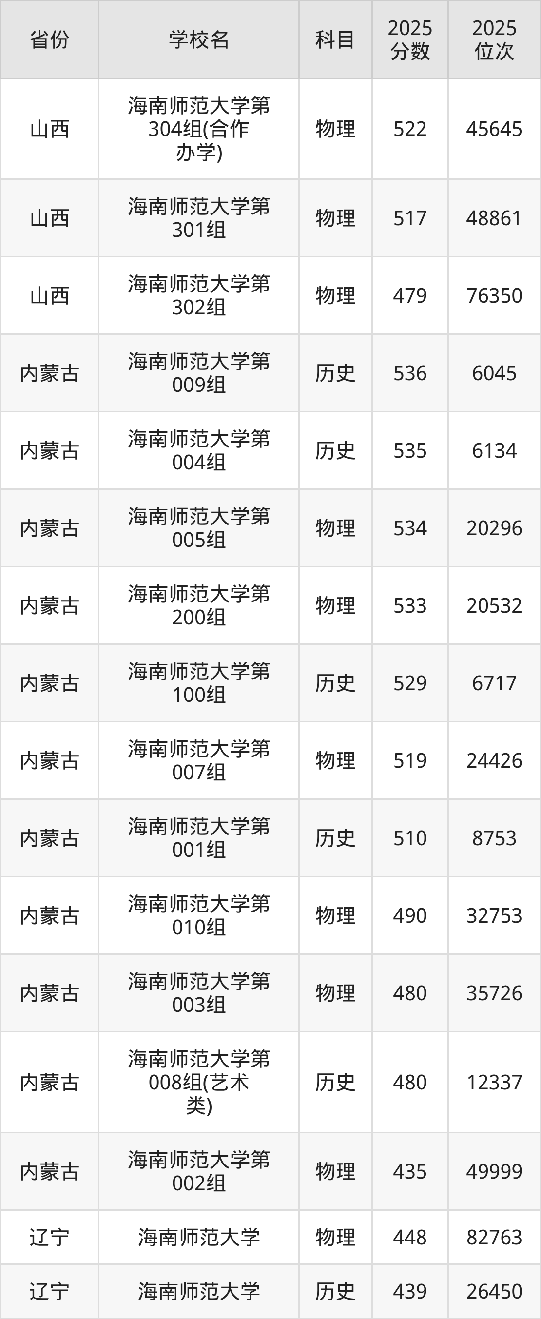 下面是海南师范大学2025年录取分数线各省汇总,一起来了解下吧。