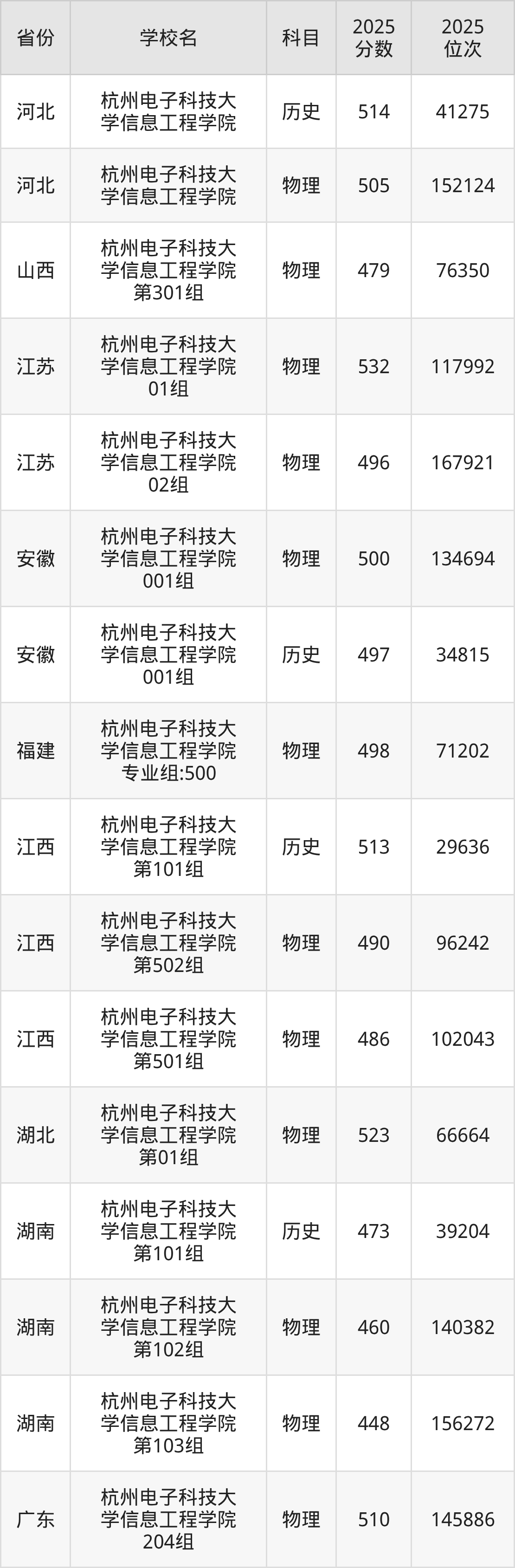 下面是杭州电子科技大学信息工程学院2025年录取分数线各省汇总,一起来了解下吧。