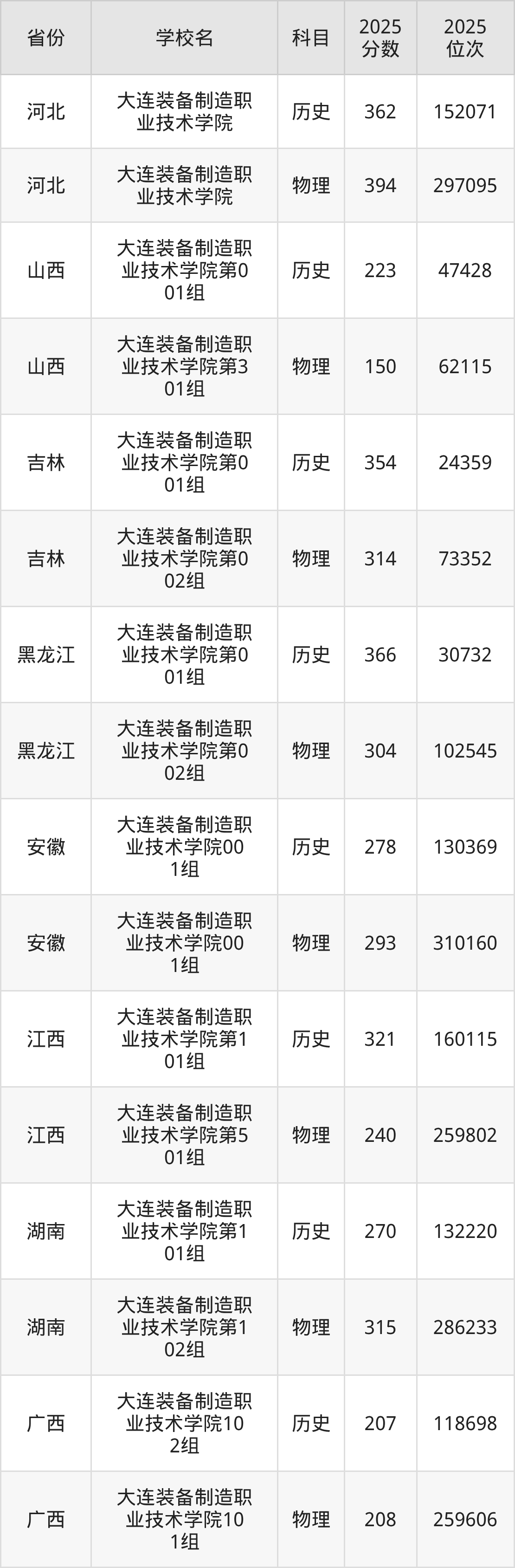 下面是大连装备制造职业技术学院2025年录取分数线各省汇总,一起来了解下吧。