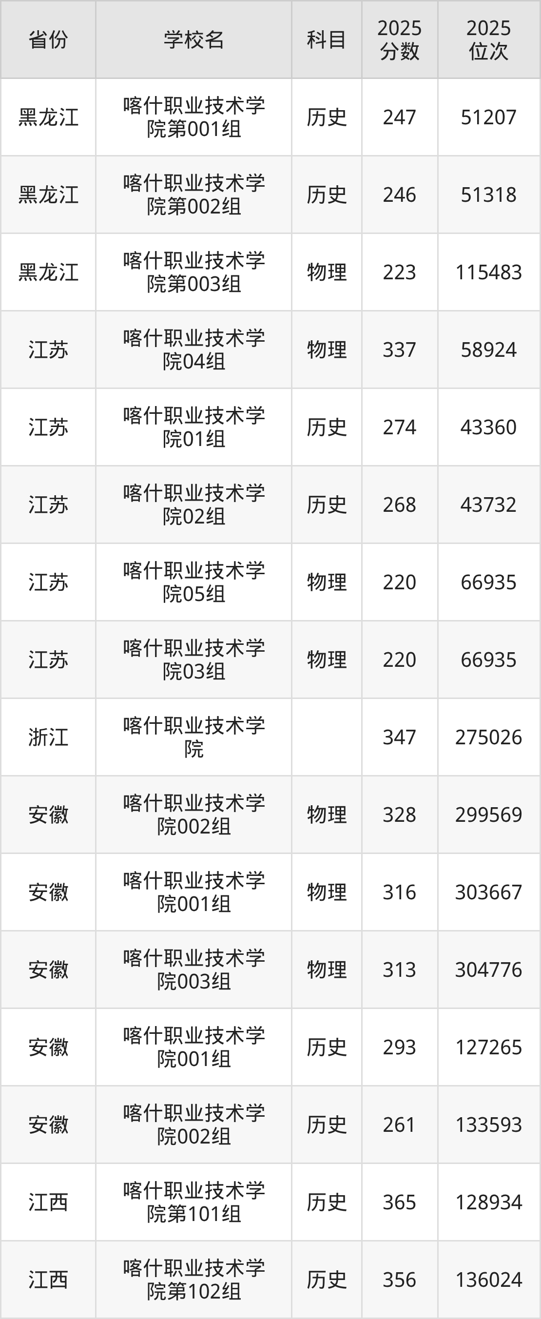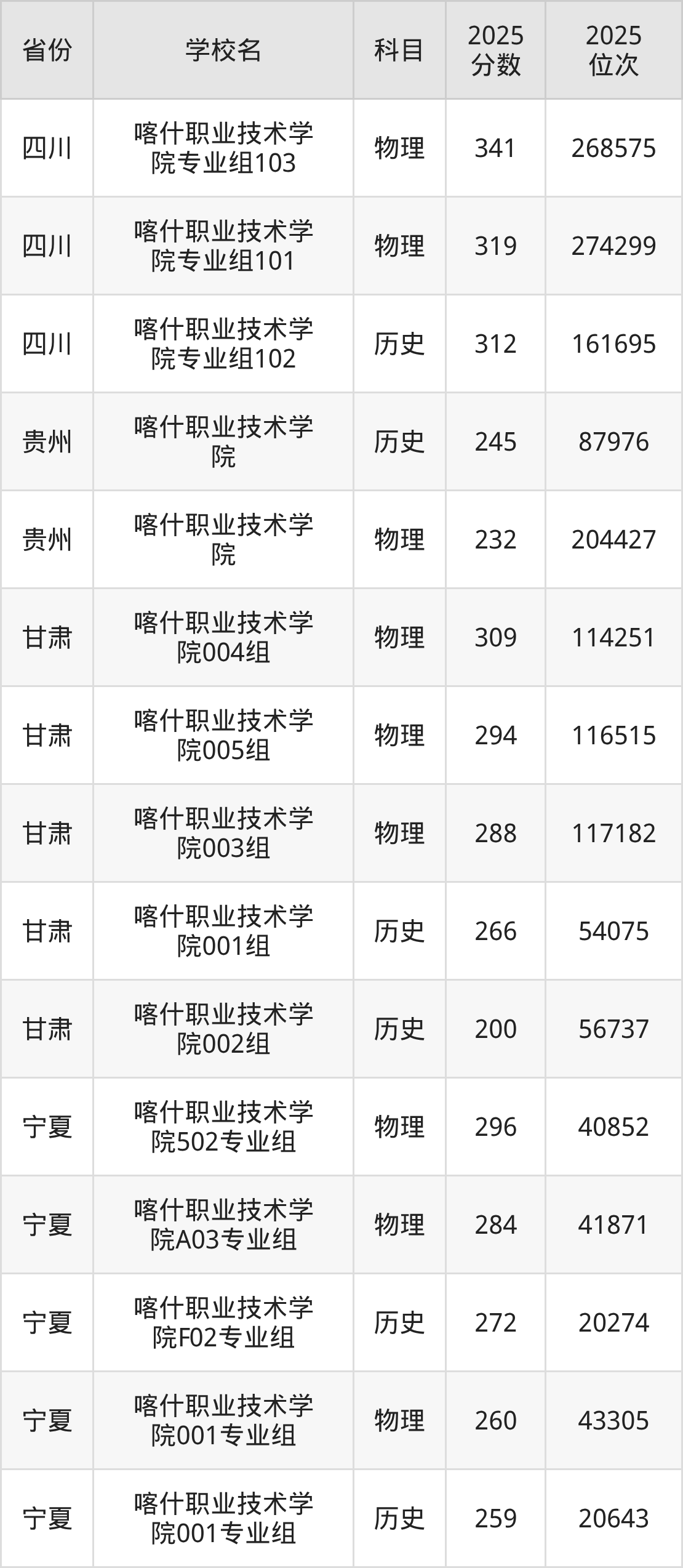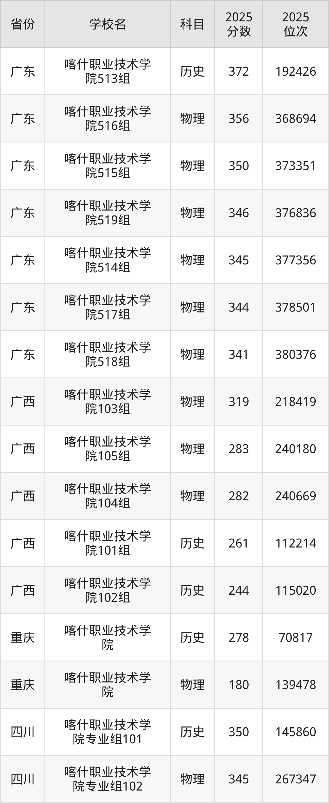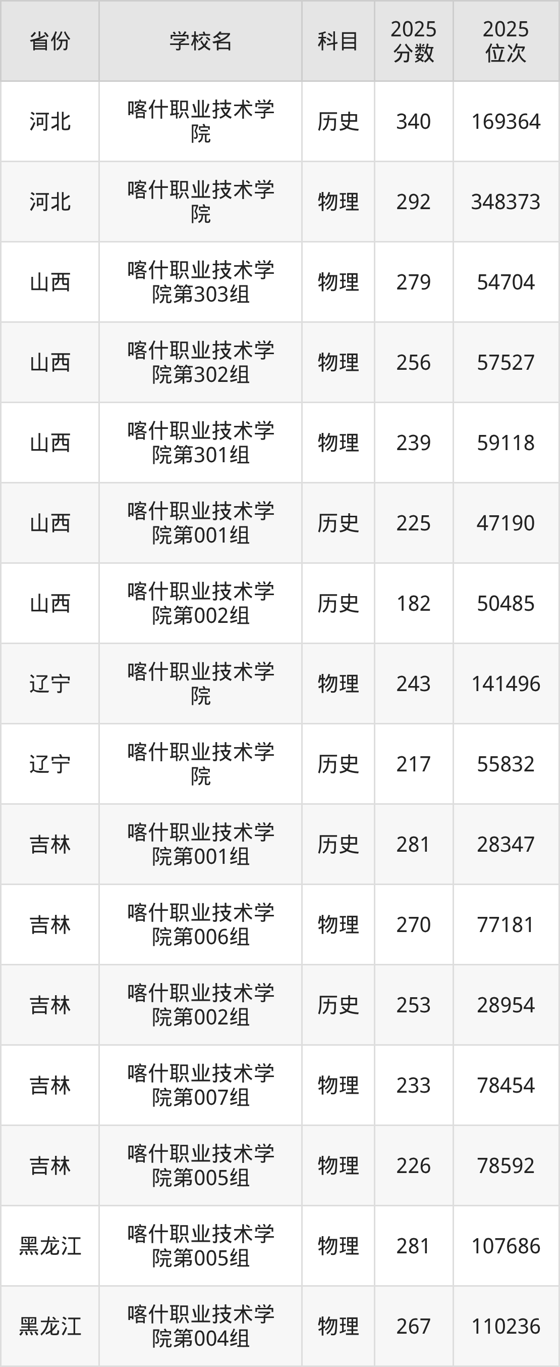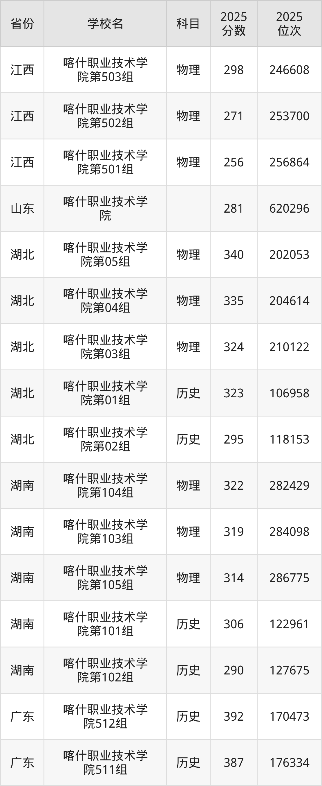 下面是喀什职业技术学院2025年录取分数线各省汇总,一起来了解下吧。
