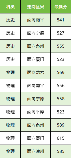 物理类:541分,对应专业为小学教育,定向南平市就业;
