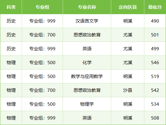 物理类:508分,对应专业为英语,定向明溪县就业;