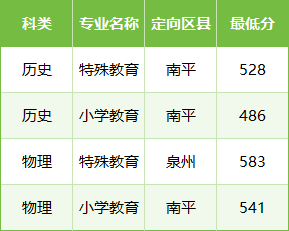 历史类:486分,对应专业为小学教育,定向南平市就业;