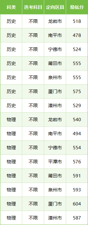 不同院校招生的最低分不同,本文收集汇总了福建各校普通类公费师范生最低分情况,可供2025届考生参考。