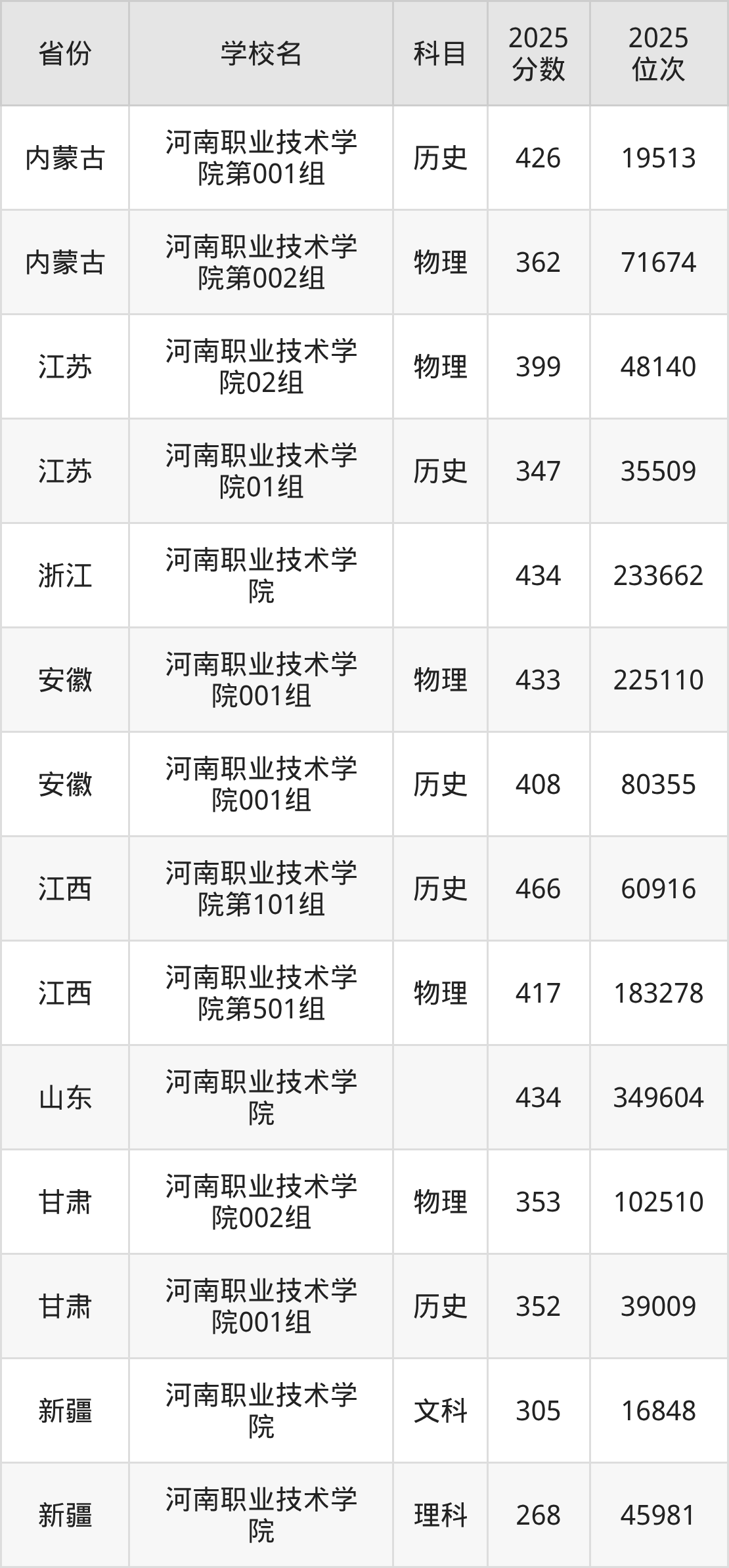 下面是河南职业技术学院2025年录取分数线各省汇总,一起来了解下吧。