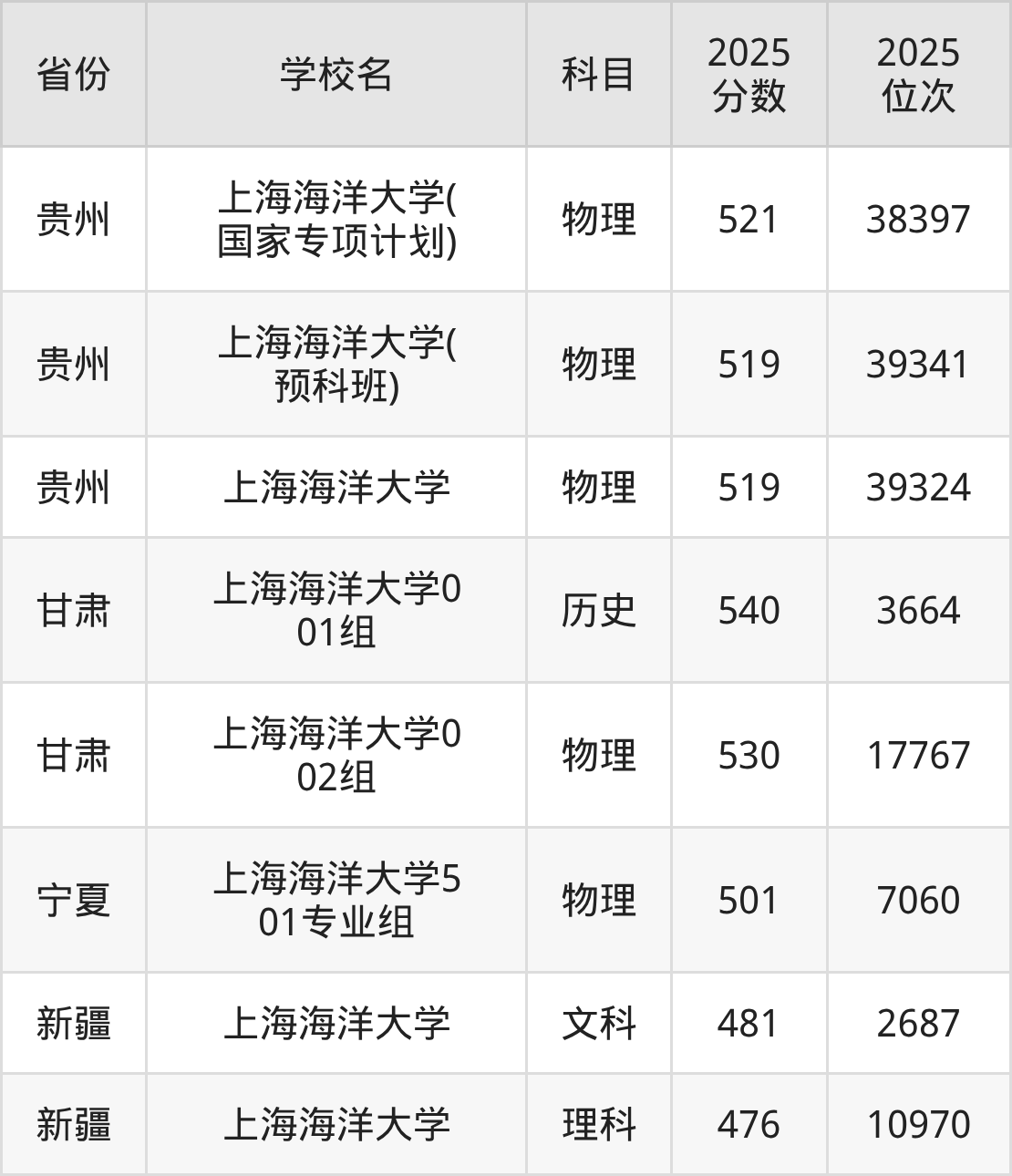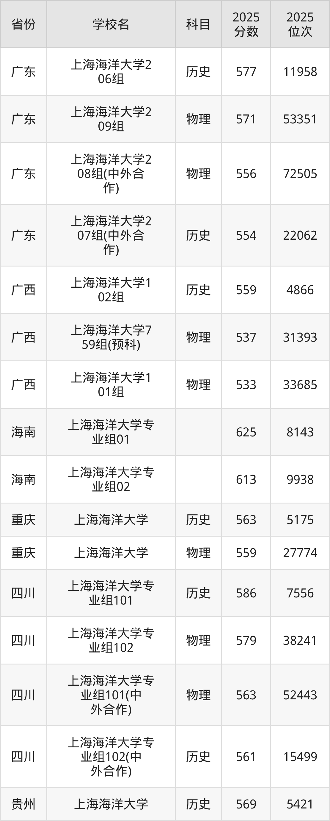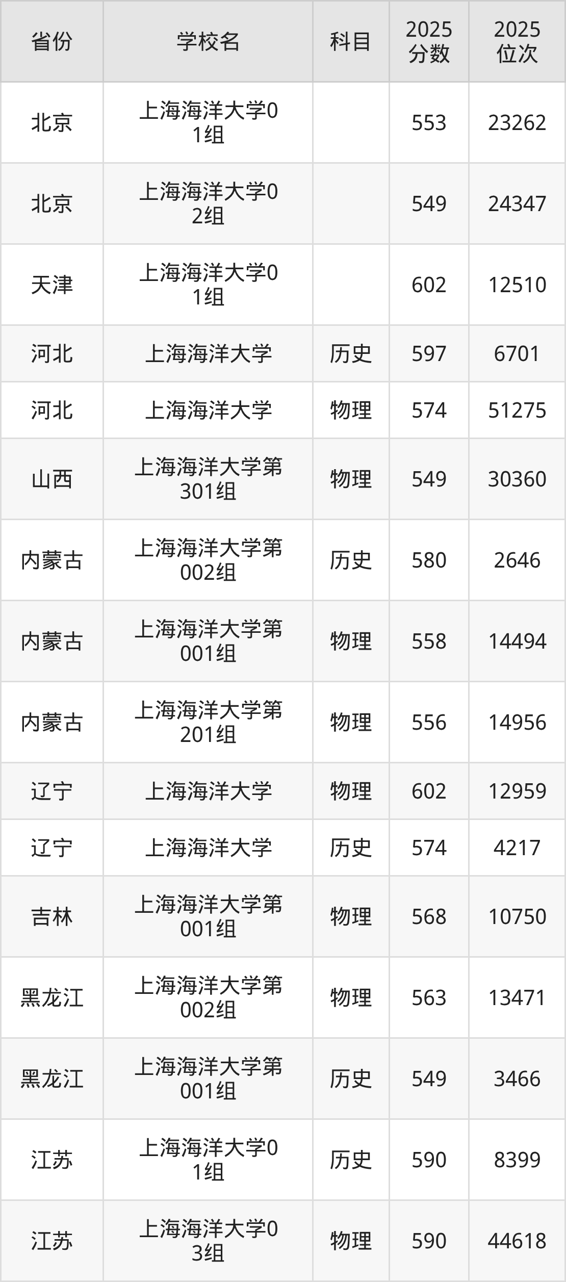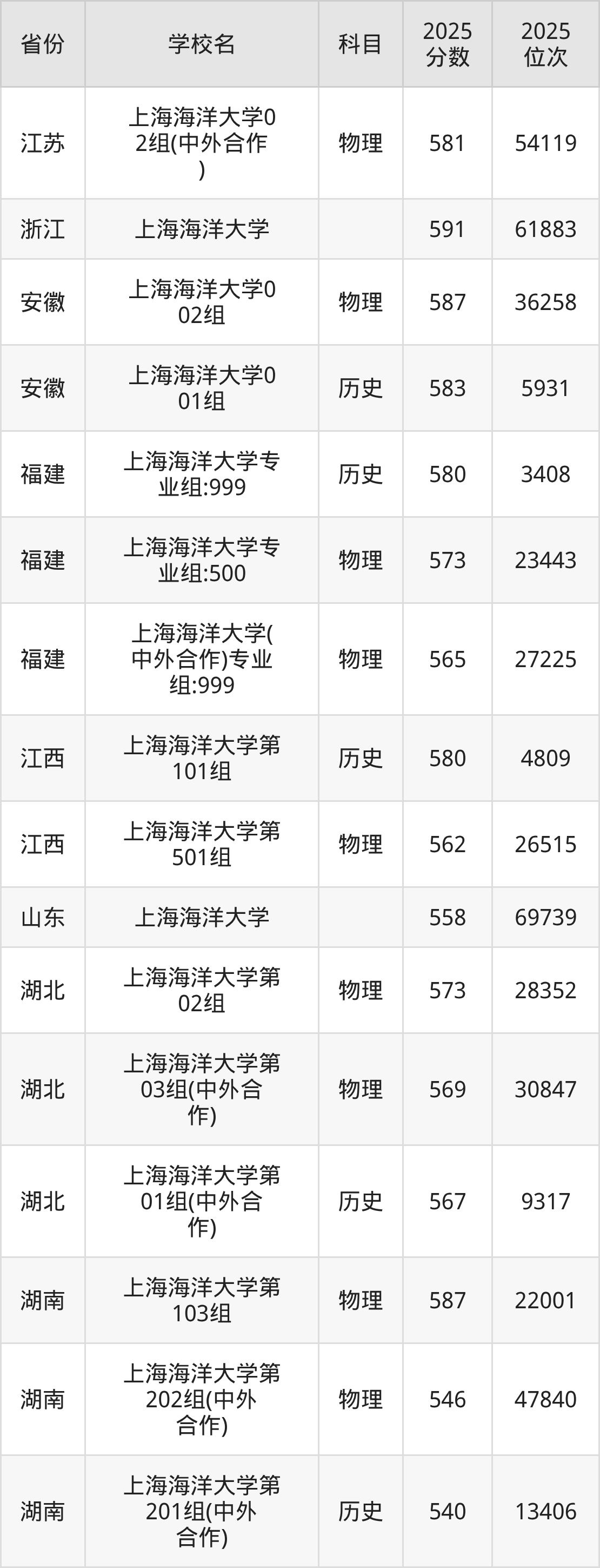 下面是上海海洋大学2025年录取分数线各省汇总,一起来了解下吧。