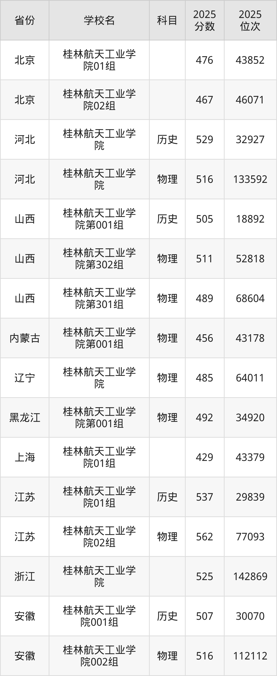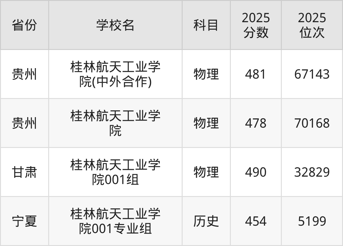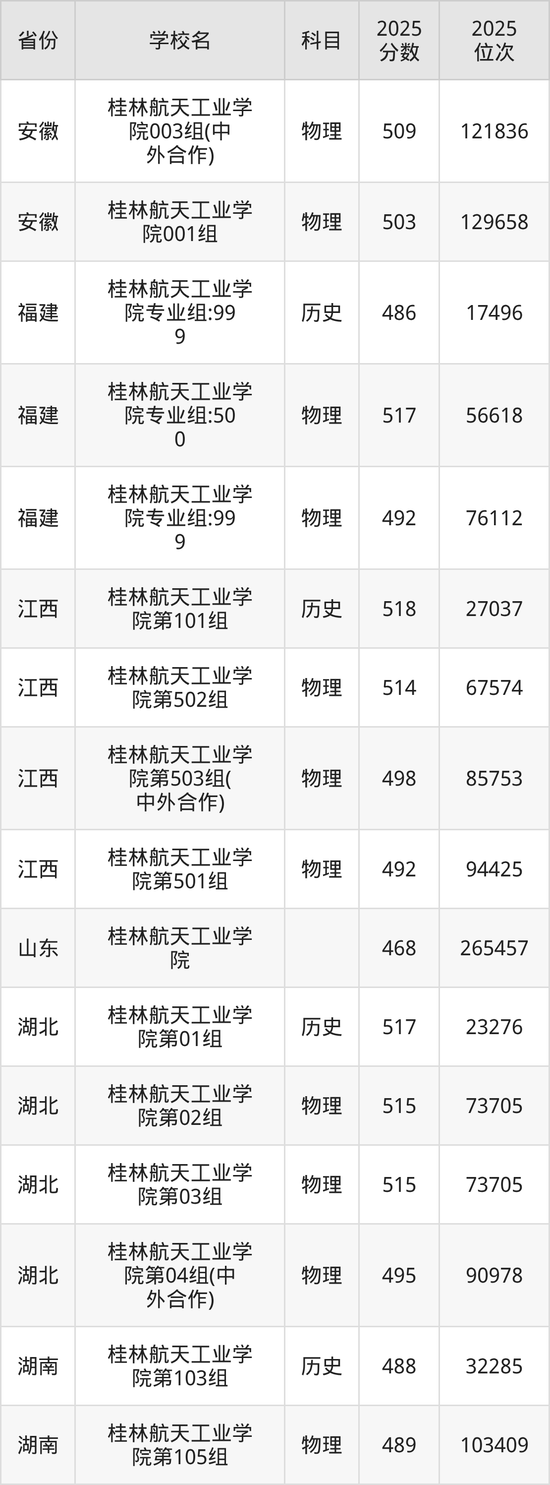 2025年桂林航天工业学院历史类最低分438分(37007名)、物理类最低分419分(125395名)。