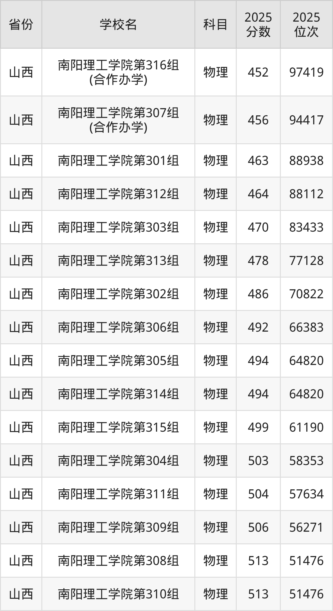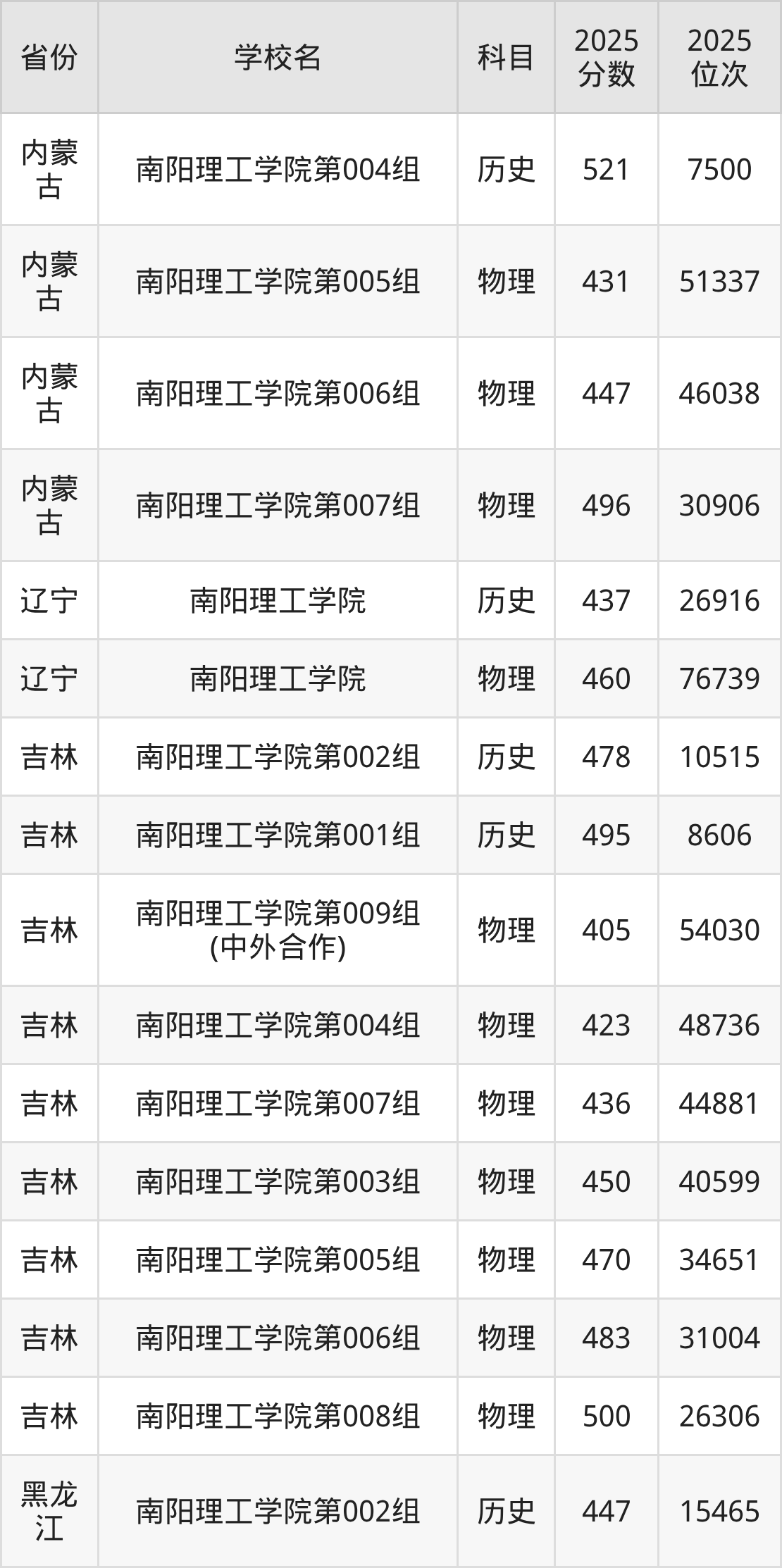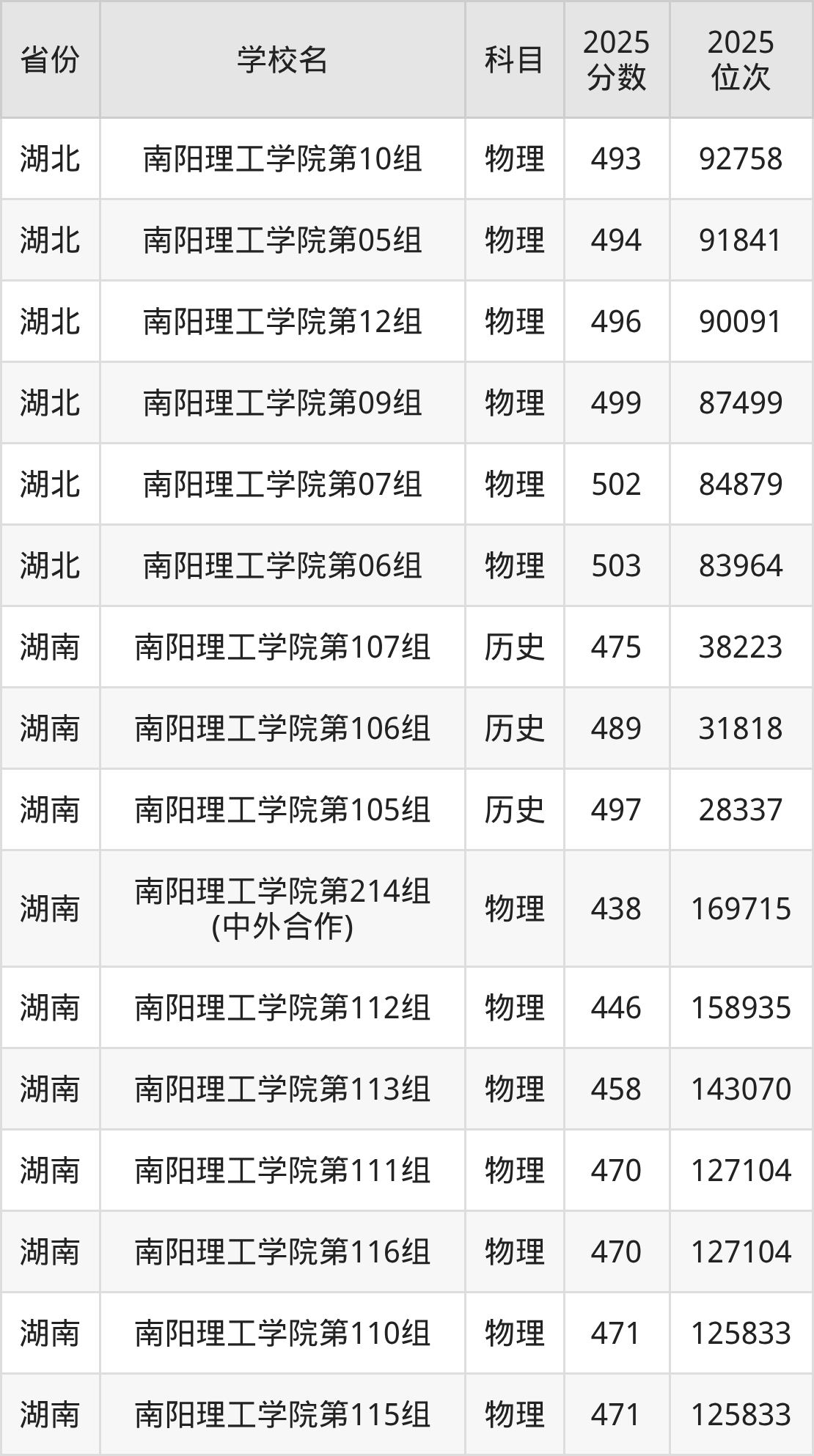 | 南阳理工学院( 中外合作)第2 02组(中外合 作办学组) | 物理 | 485 | 238824 |
