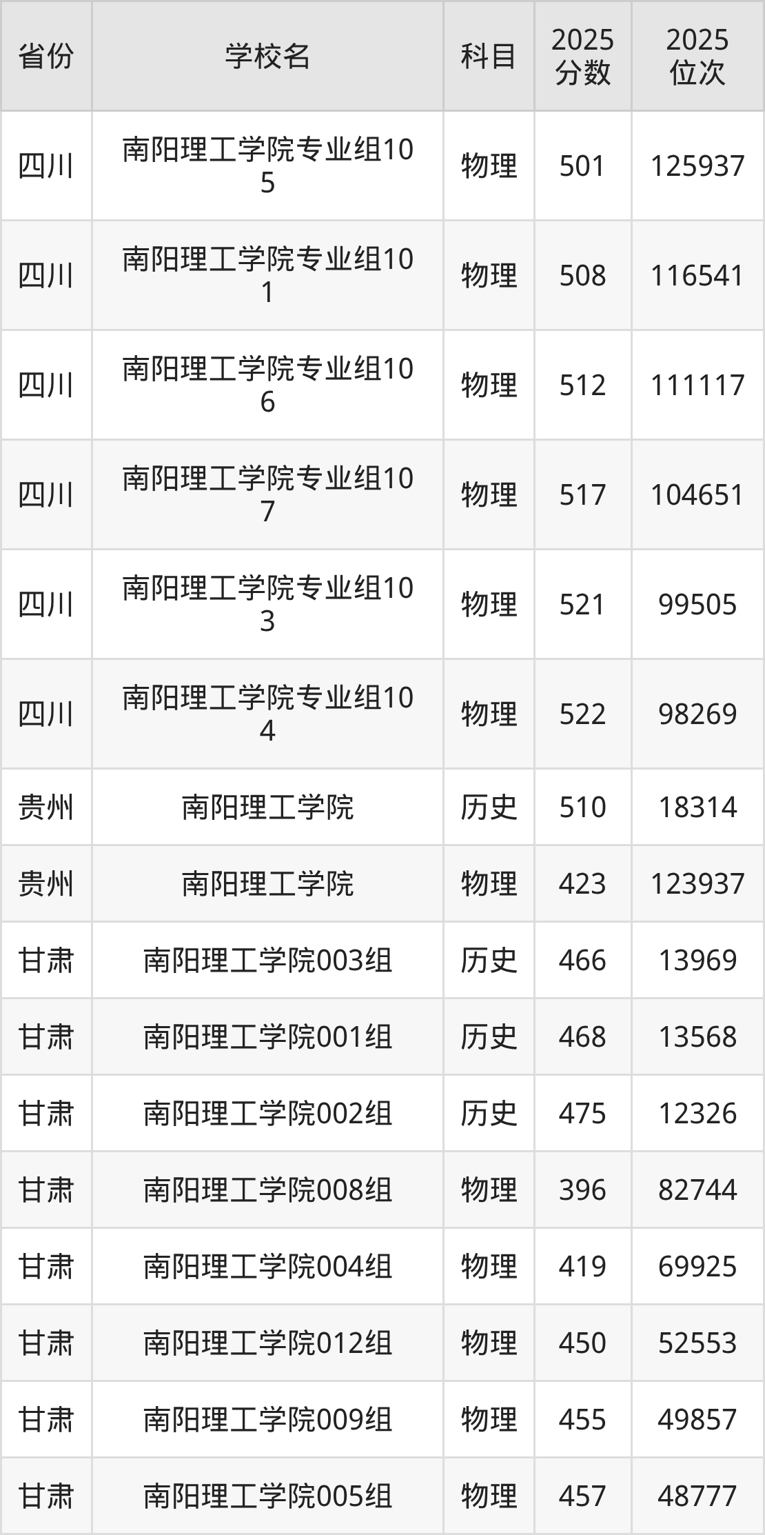 | 南阳理工学院( 与南阳医学高等 专科学校联办) 第101组 | 物理 | 550 | 117829 |