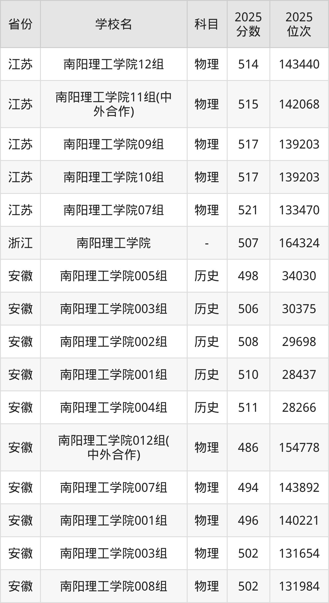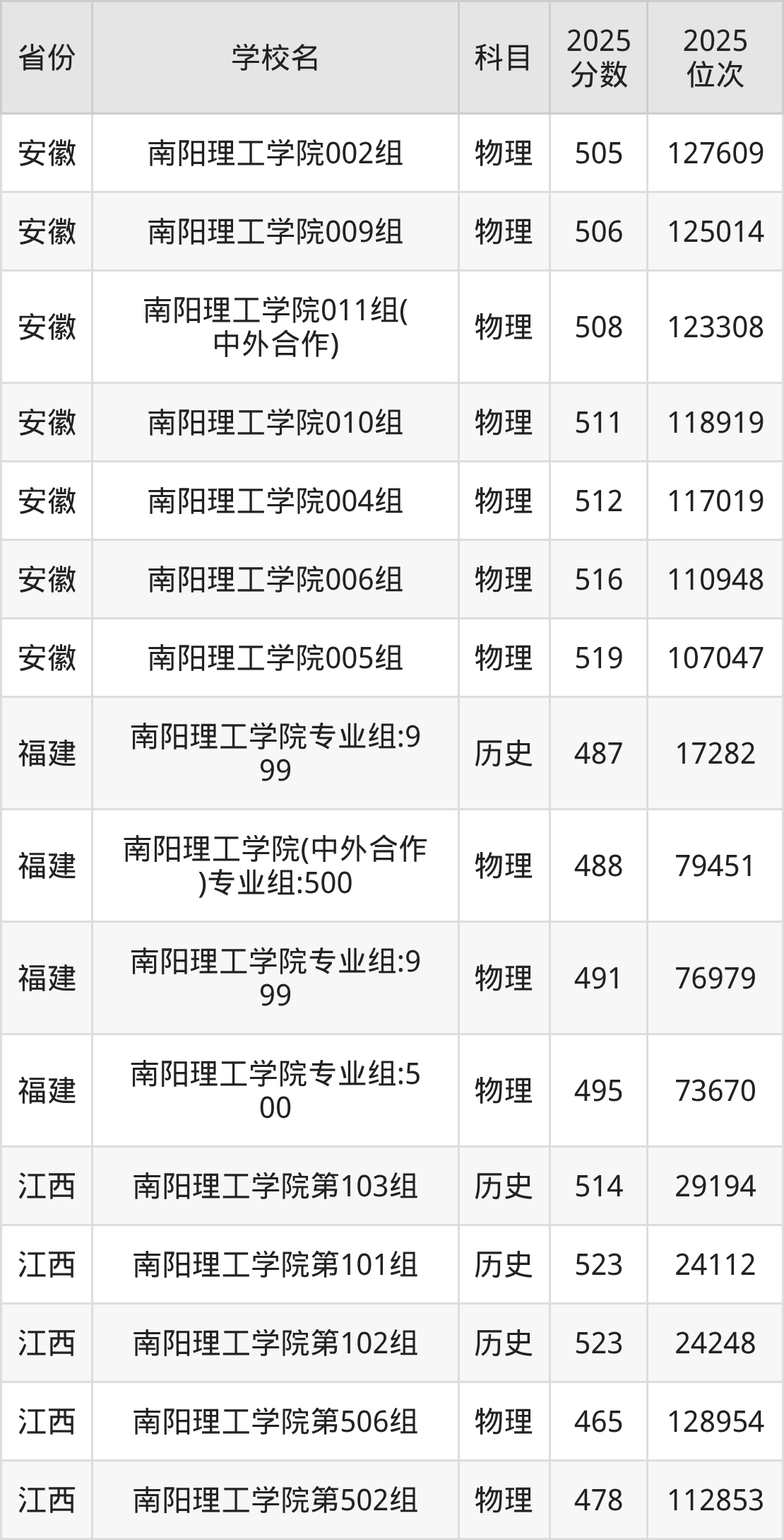 | 南阳理工学院( 中外合作)第2 01组(中外合 作办学组) | 物理 | 518 | 175267 |