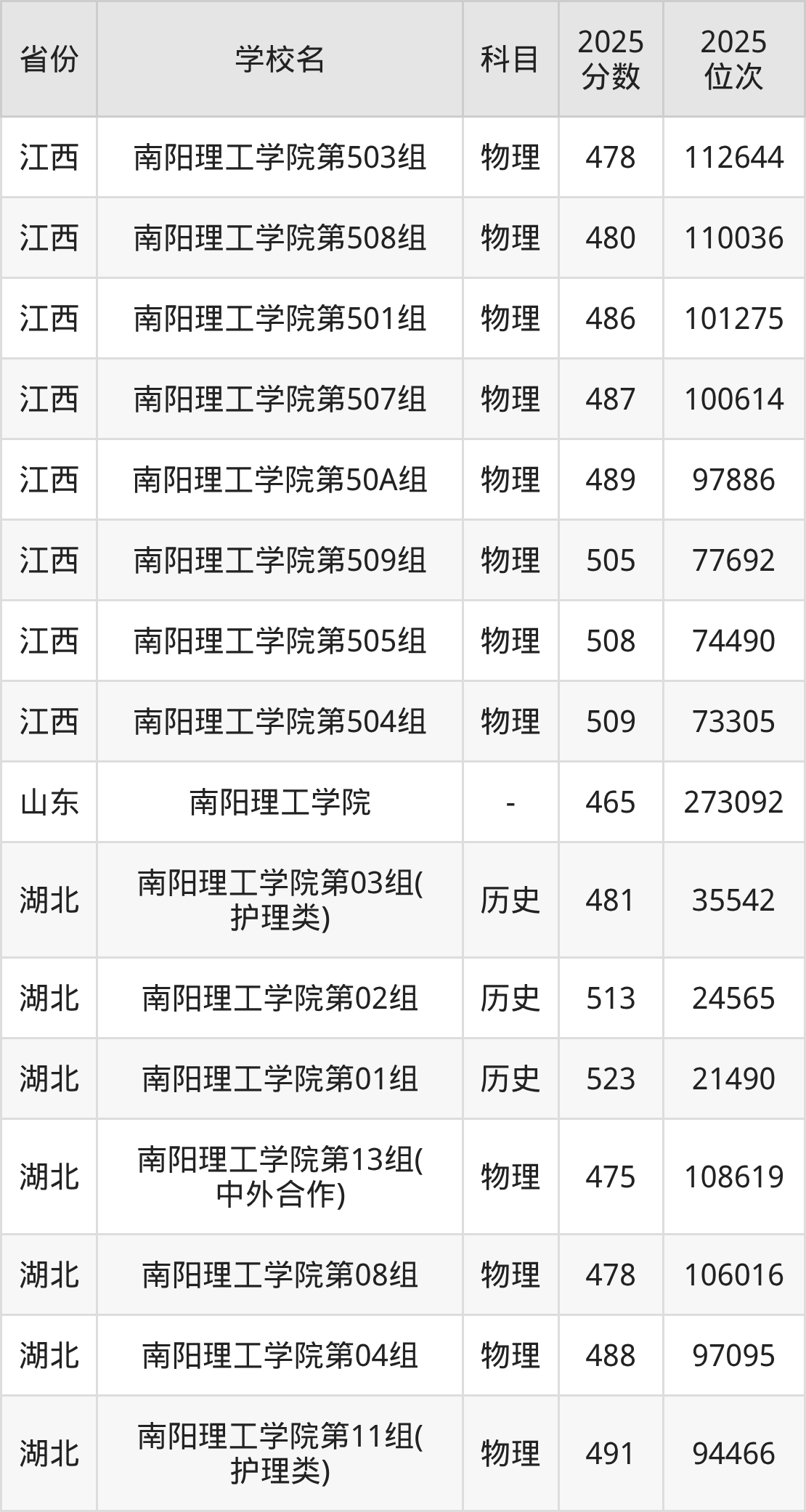 | 南阳理工学院第 501组(不组 织专业考试的艺 术类专业组) | 物理 | 489 | 231000 |