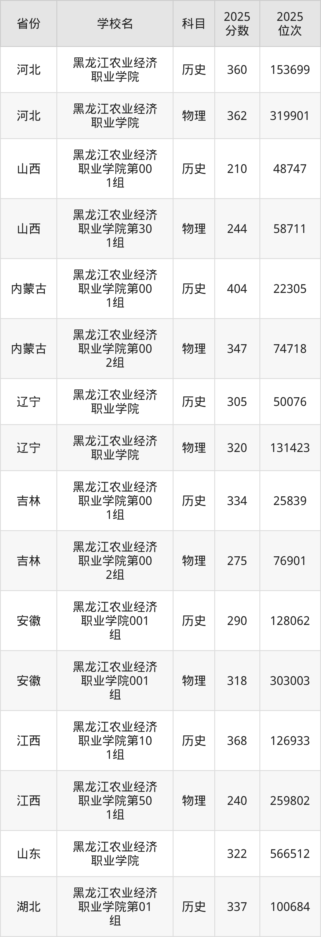 下面是黑龙江农业经济职业学院2025年录取分数线各省汇总,一起来了解下吧。
