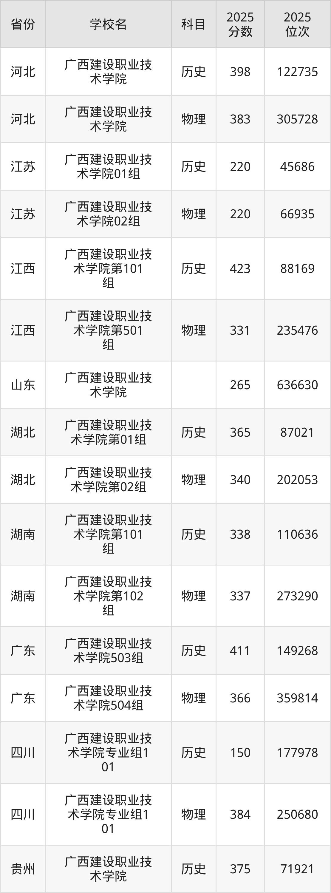 下面是广西建设职业技术学院2025年录取分数线各省汇总,一起来了解下吧。