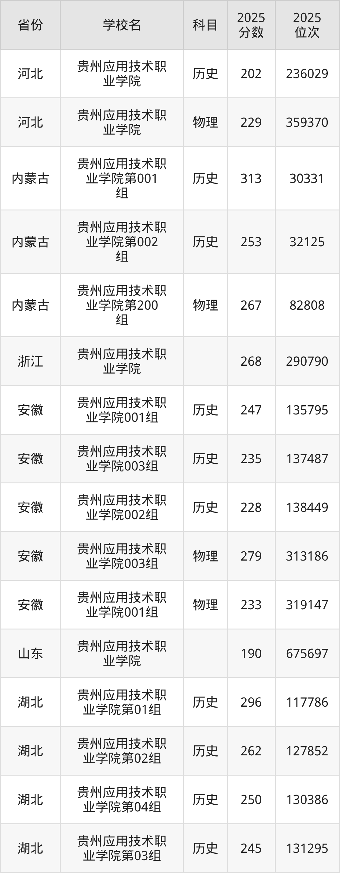 下面是贵州应用技术职业学院2025年录取分数线各省汇总,一起来了解下吧。