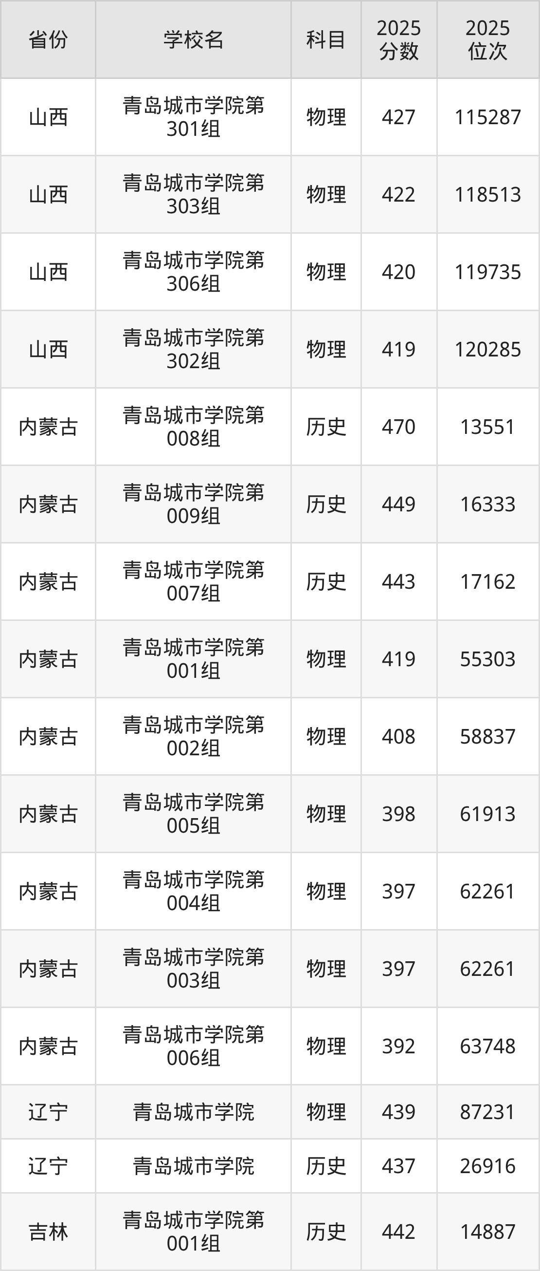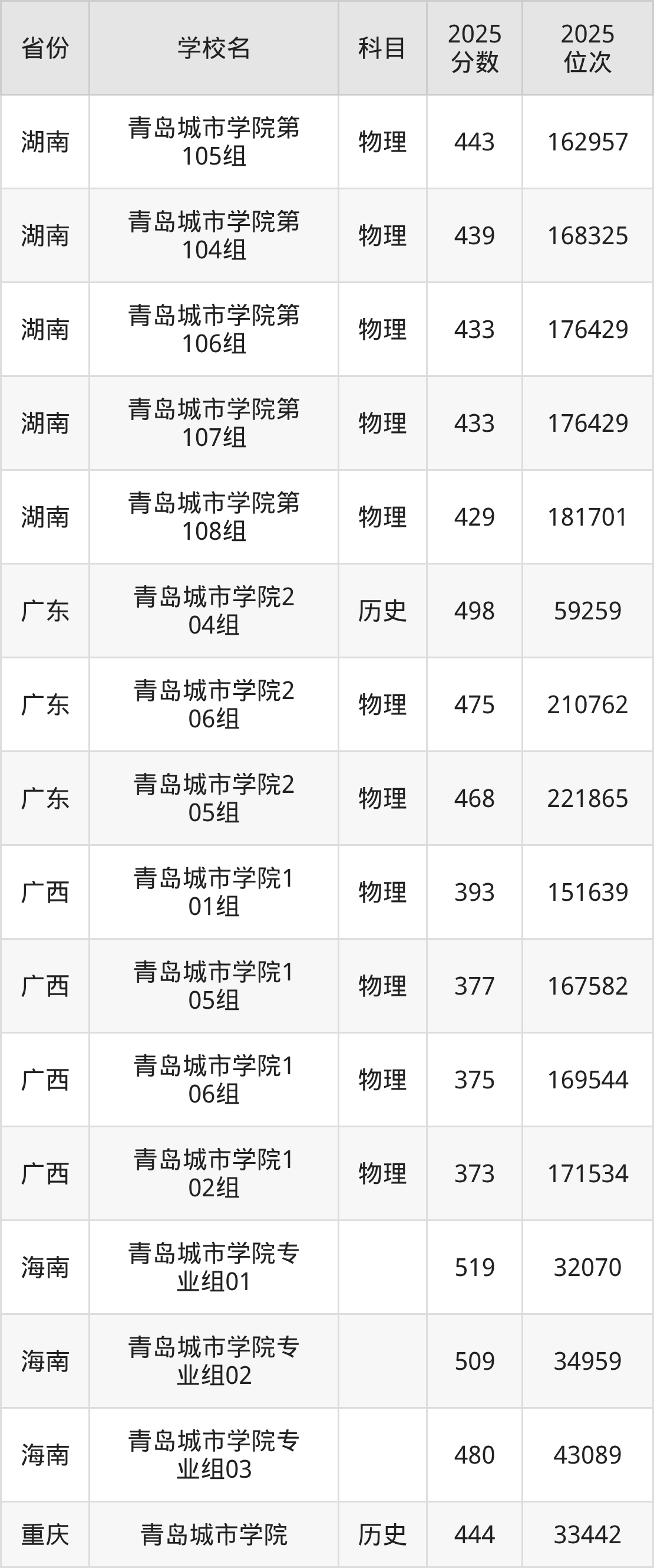 下面是青岛城市学院2025年录取分数线各省汇总,一起来了解下吧。