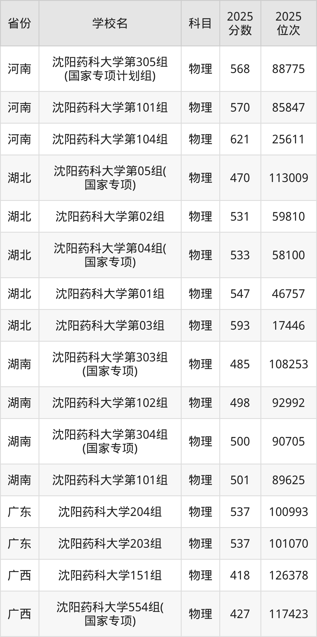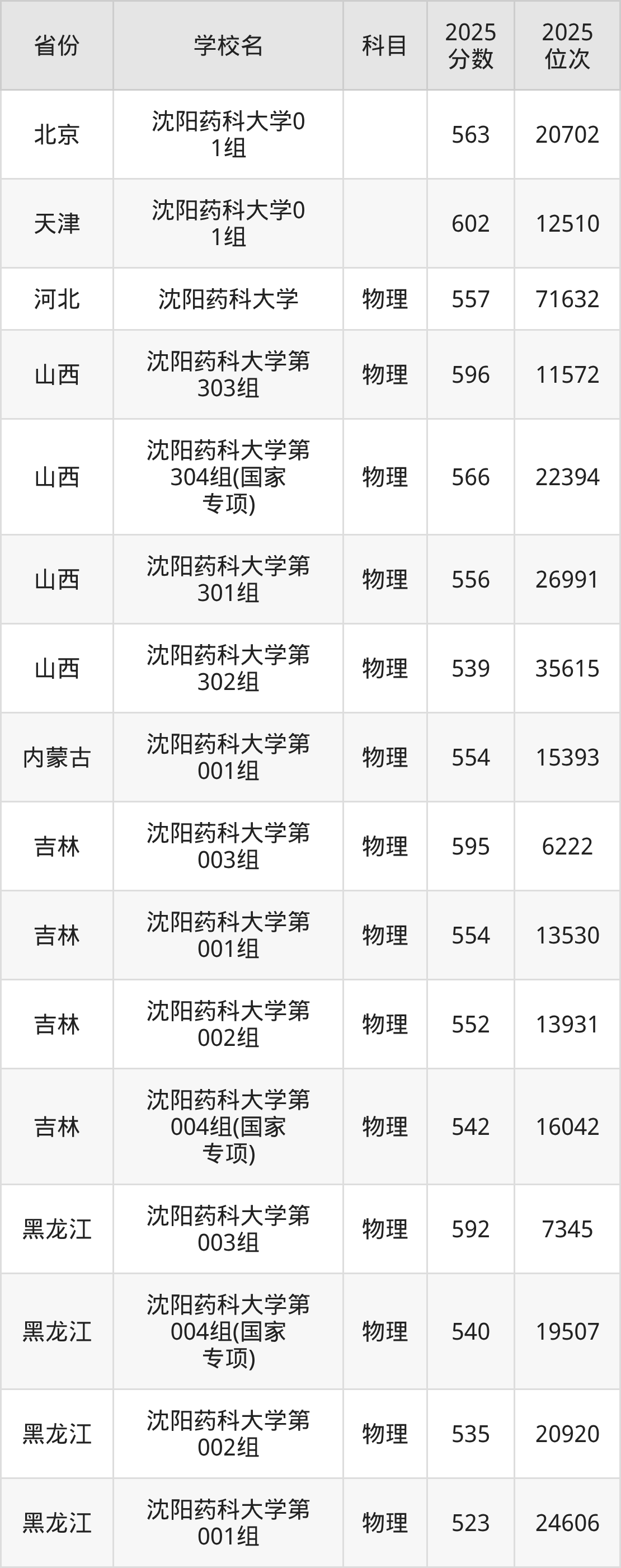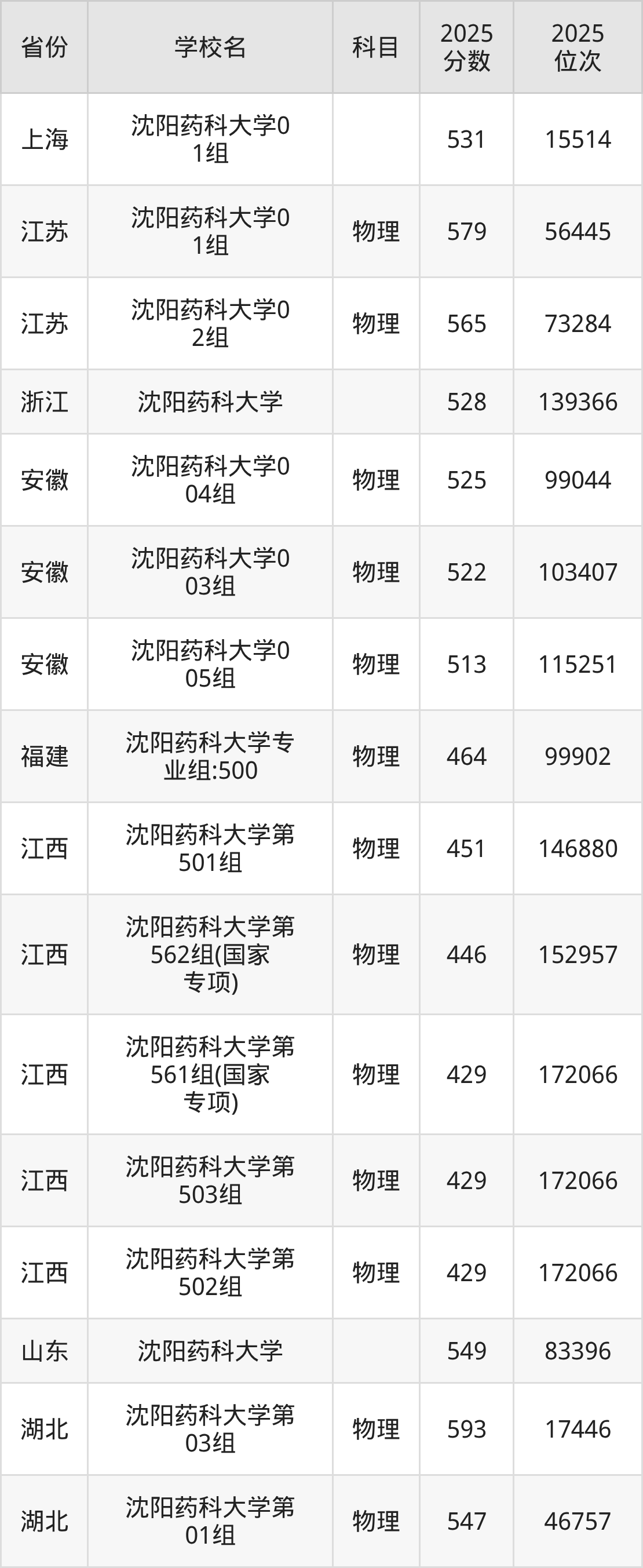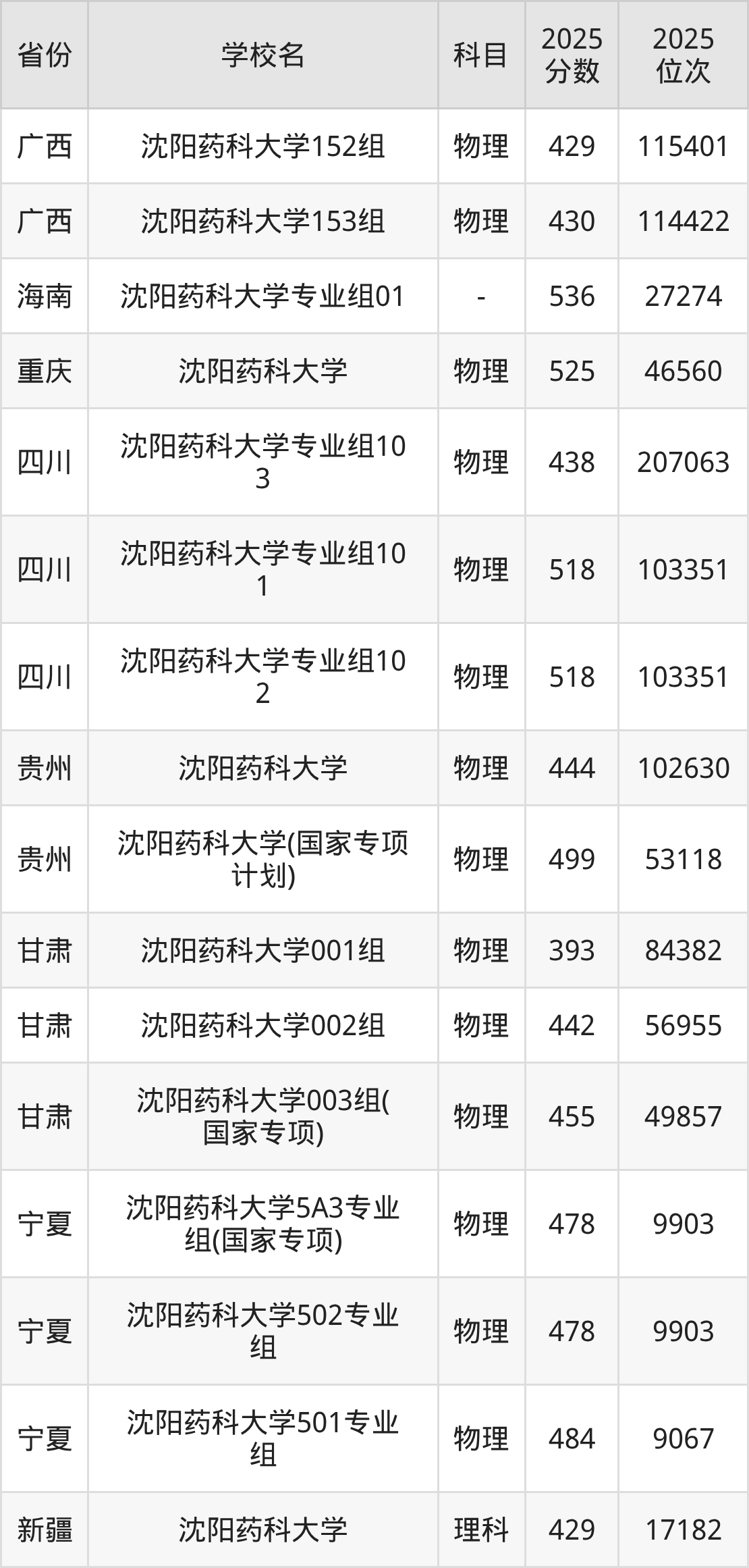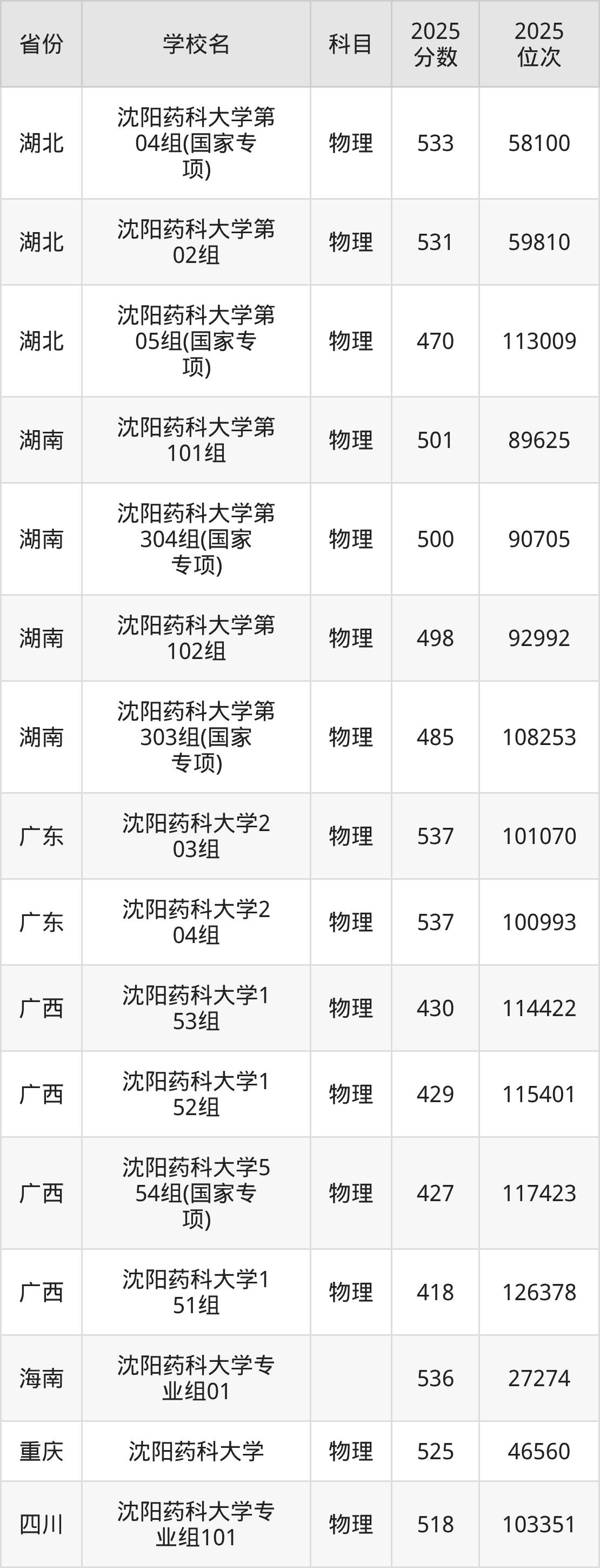 2025年沈阳药科大学物理类最低分532分(41074名)。