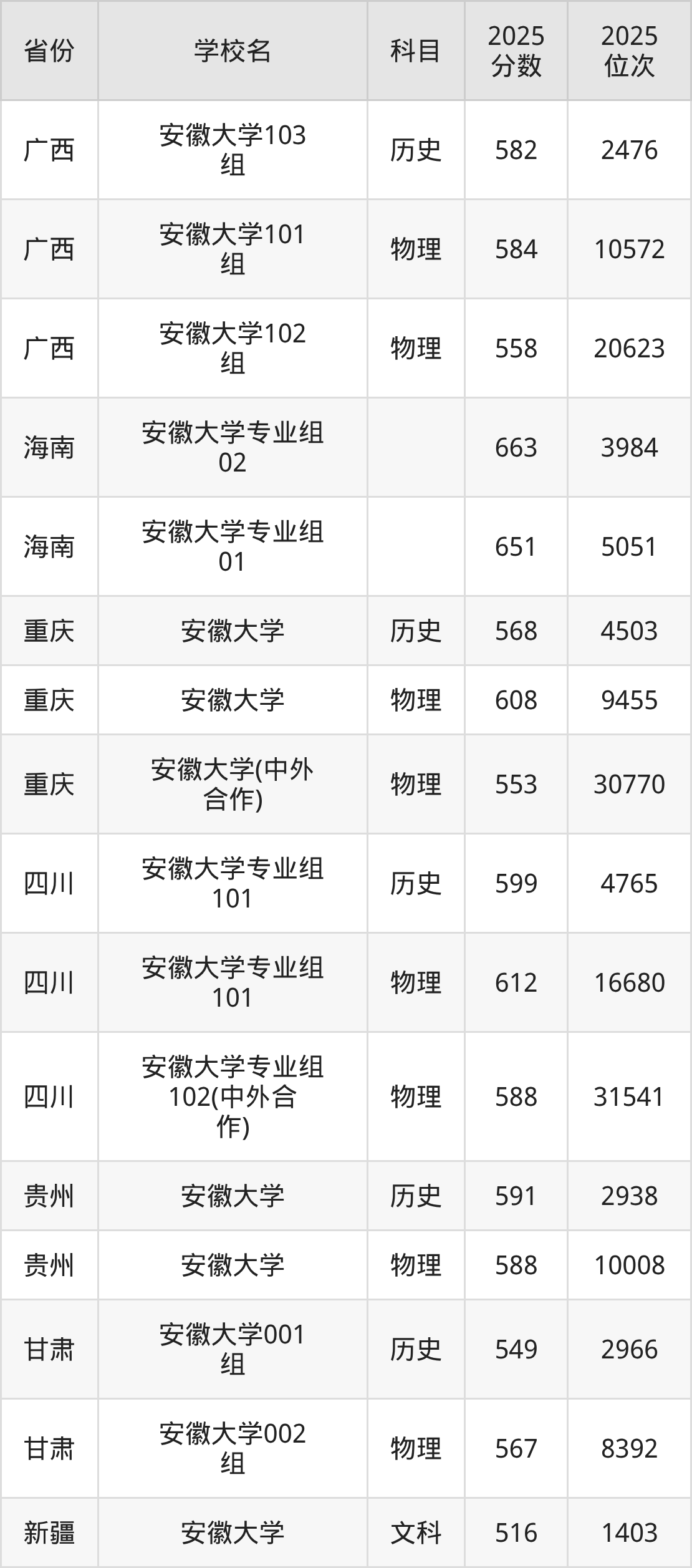 下面是安徽大学2025年录取分数线各省汇总,一起来了解下吧。