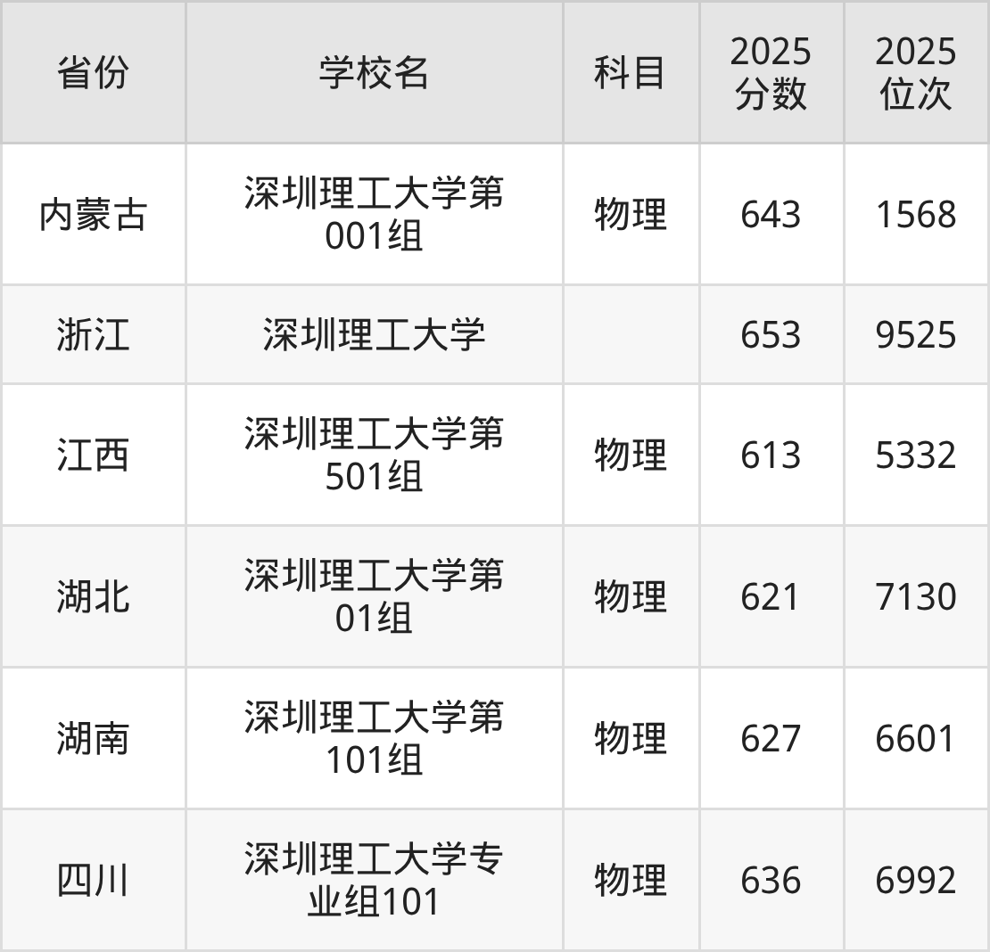 2025年深圳理工大学物理类最低分629分(10163名)。