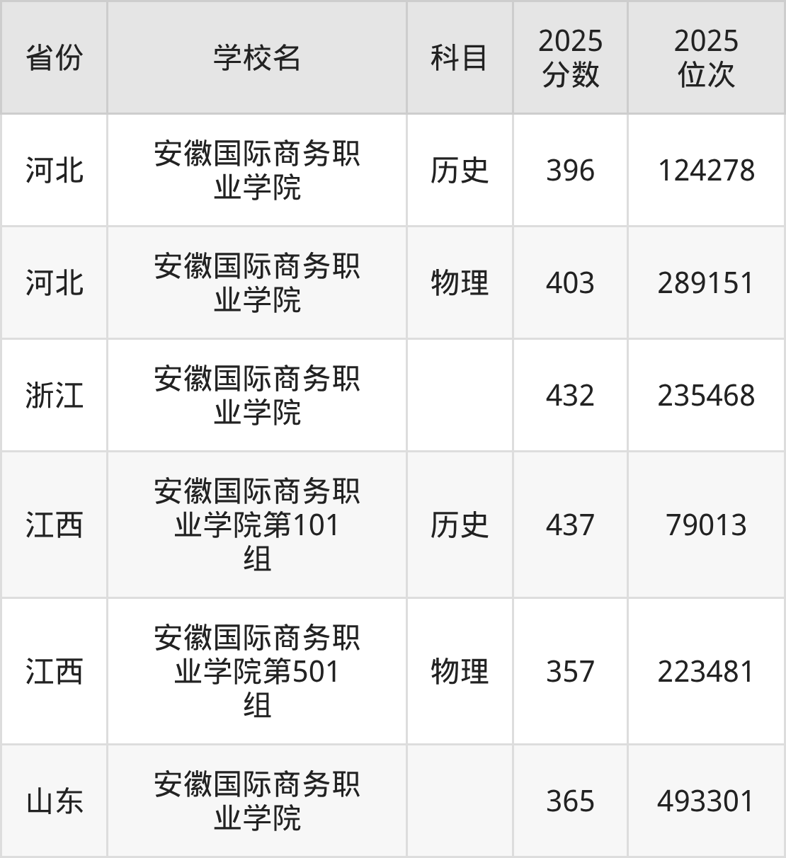下面是安徽国际商务职业学院2025年录取分数线各省汇总,一起来了解下吧。