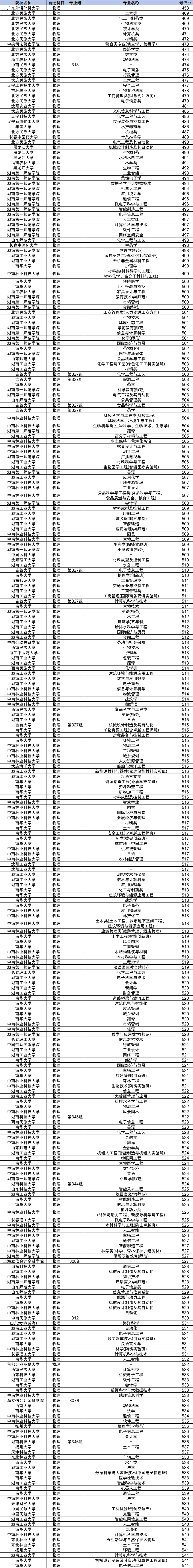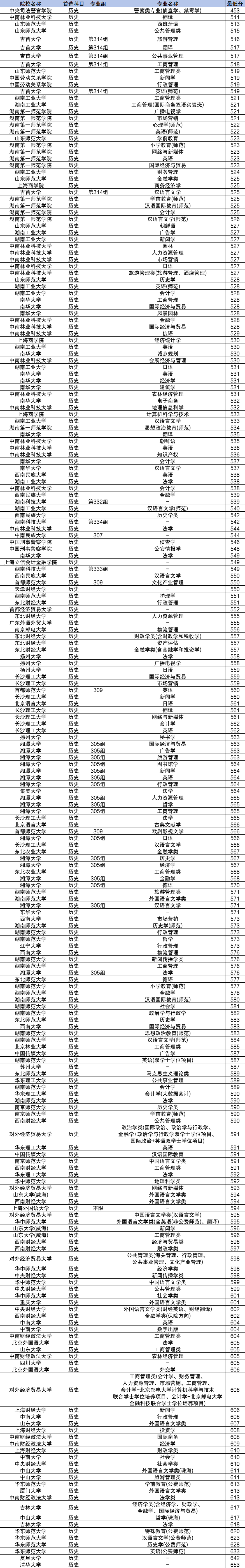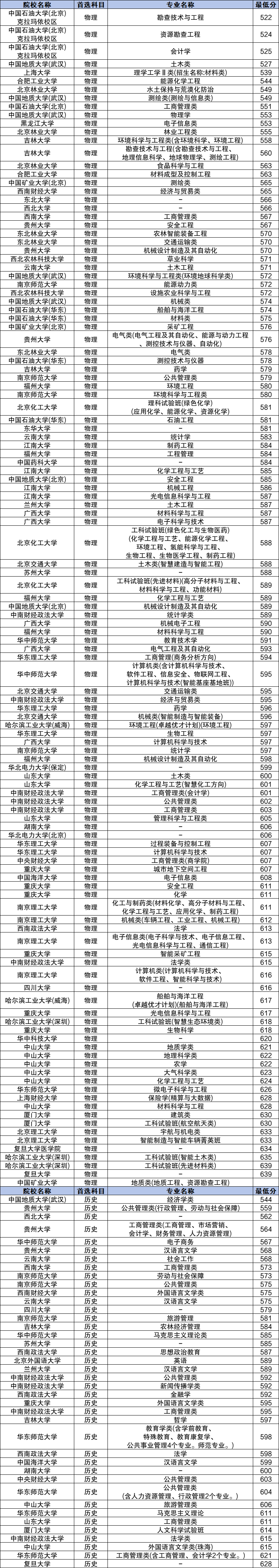 物理类收分最低的是衡阳师范学院(食品科学与工程)、衡阳师范学院(环境工程);历史类收分最低的是吉首大学(翻译)。
