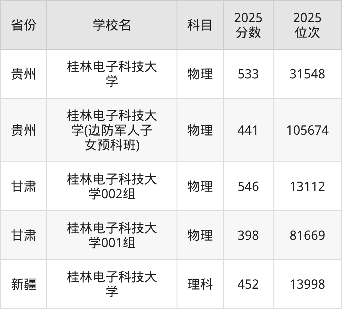 2025年桂林电子科技大学历史类最低分468分(25705名)、物理类最低分485分(66327名)。