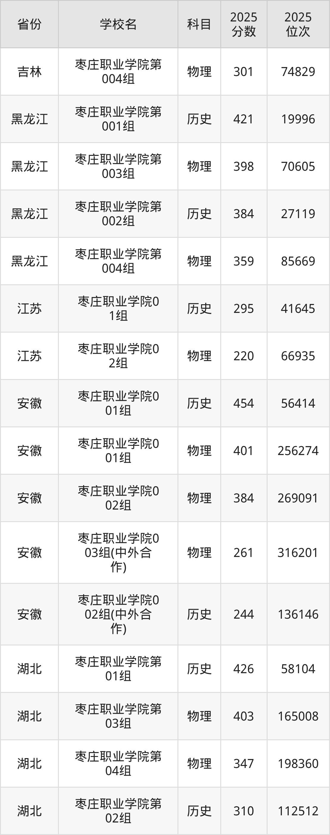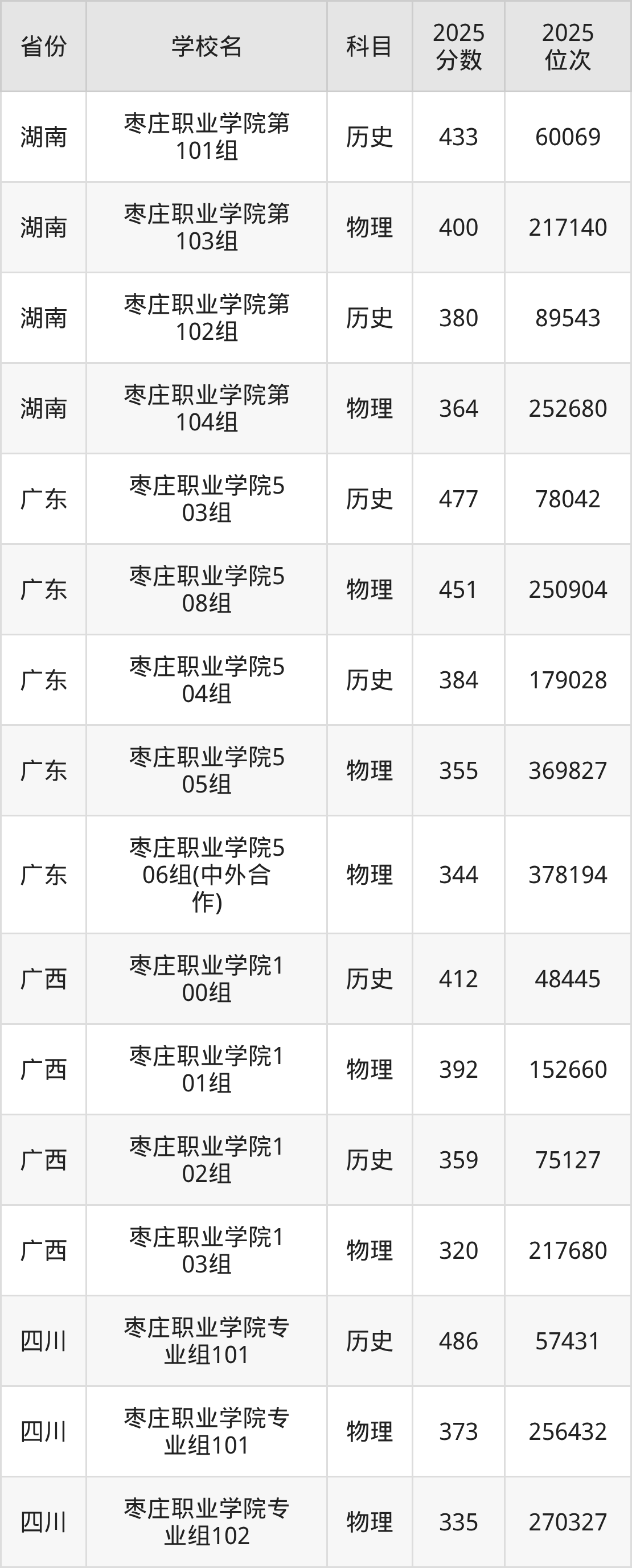 下面是枣庄职业学院2025年录取分数线各省汇总,一起来了解下吧。