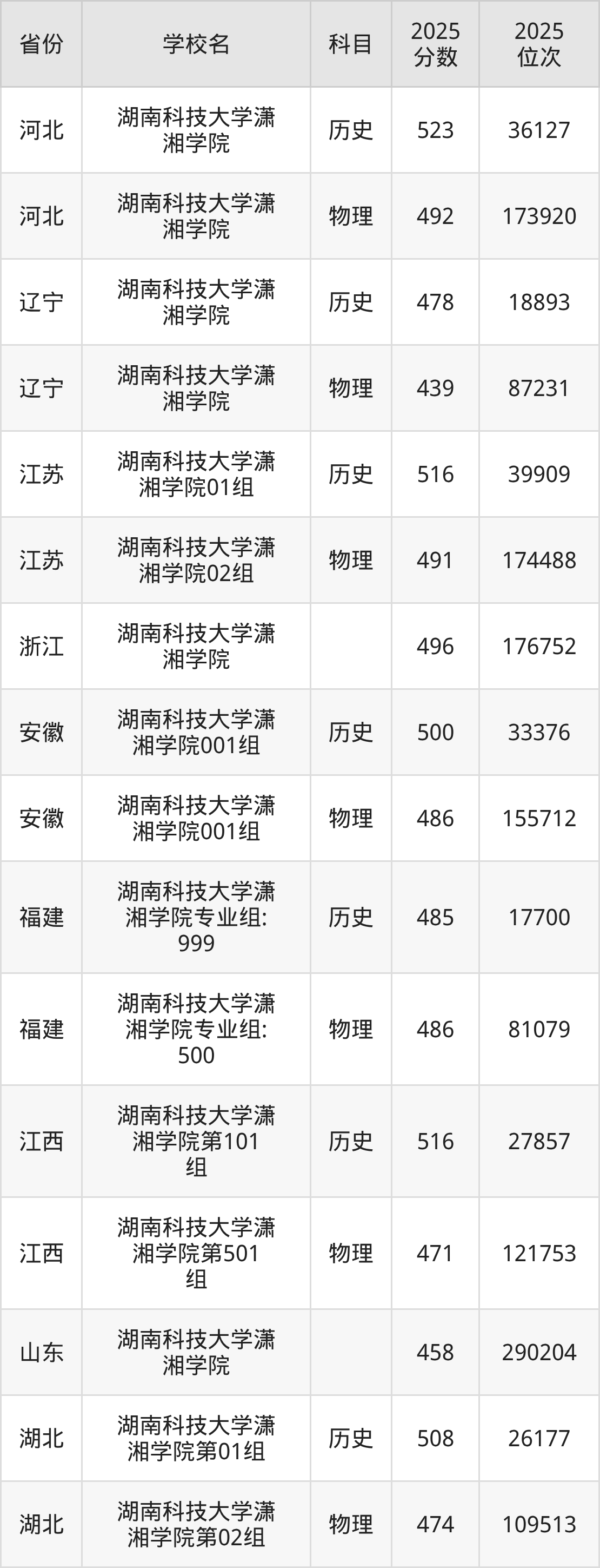 2025年湖南科技大学潇湘学院历史类最低分486分(33137名)、物理类最低分445分(160297名)。
