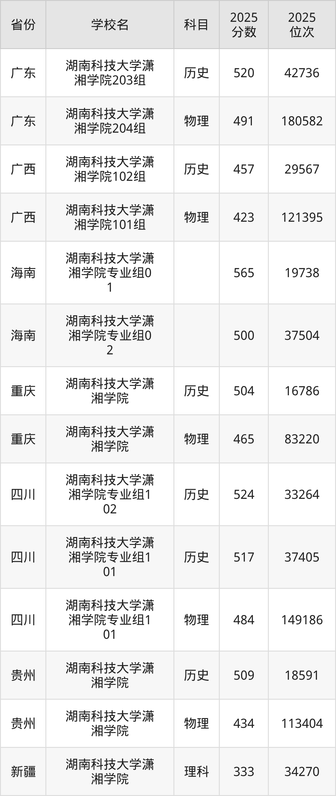 下面是湖南科技大学潇湘学院2025年录取分数线各省汇总,一起来了解下吧。