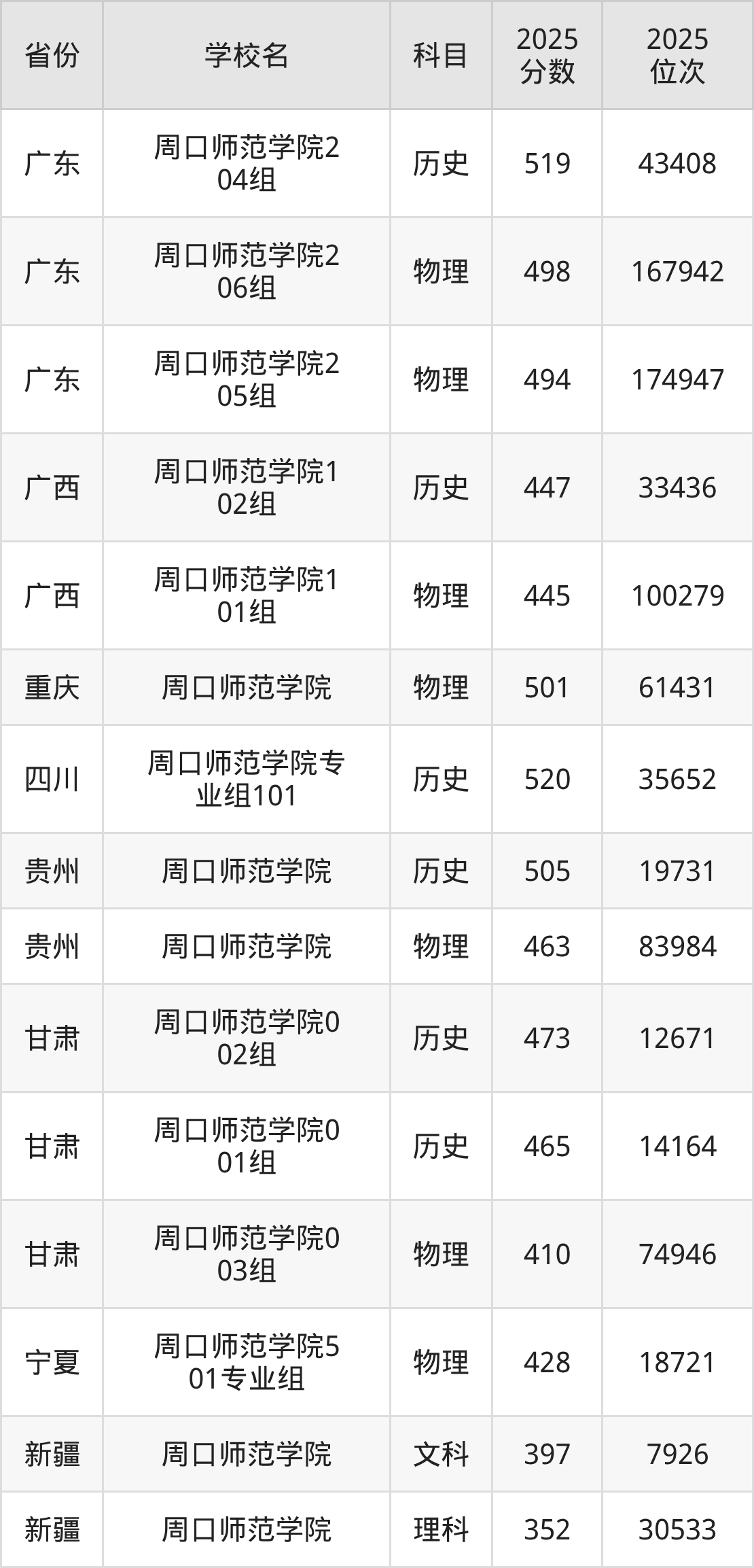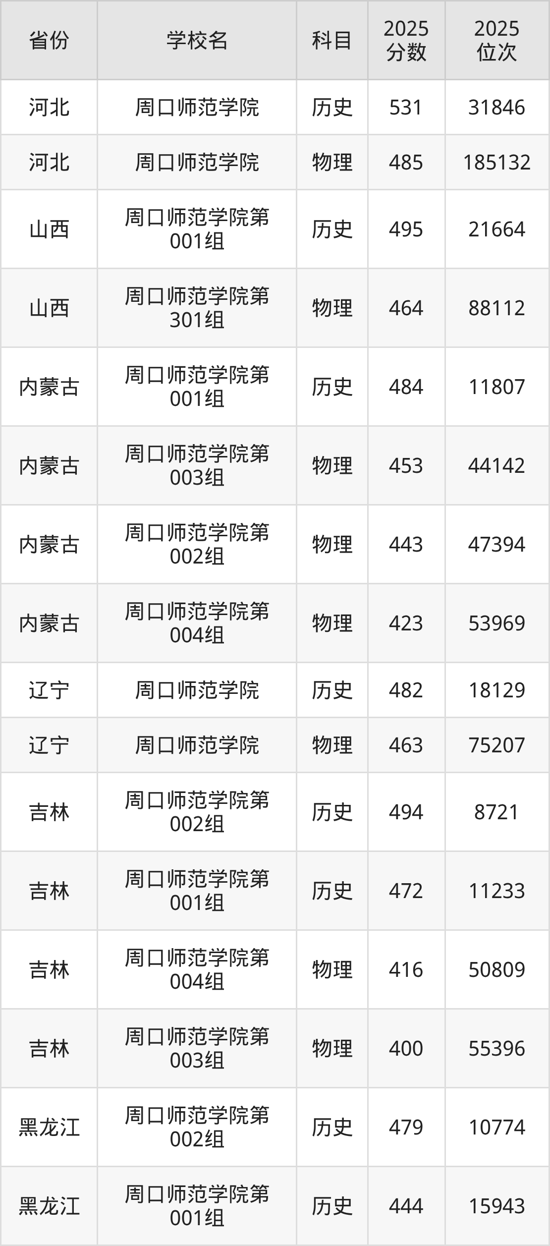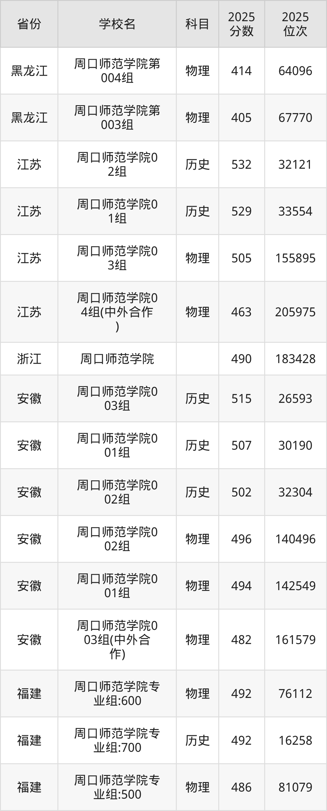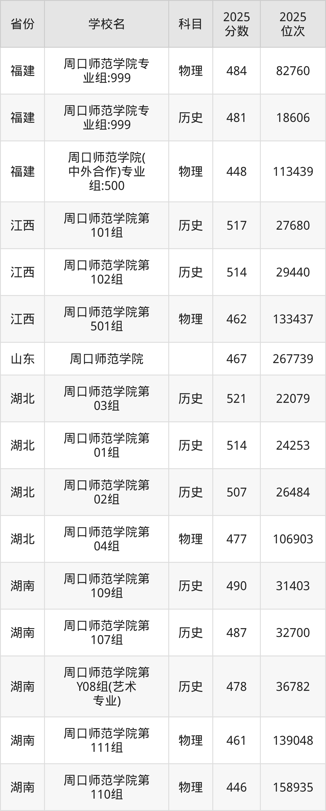 2025年周口师范学院历史类最低分478分(36782名)、物理类最低分446分(158935名)。